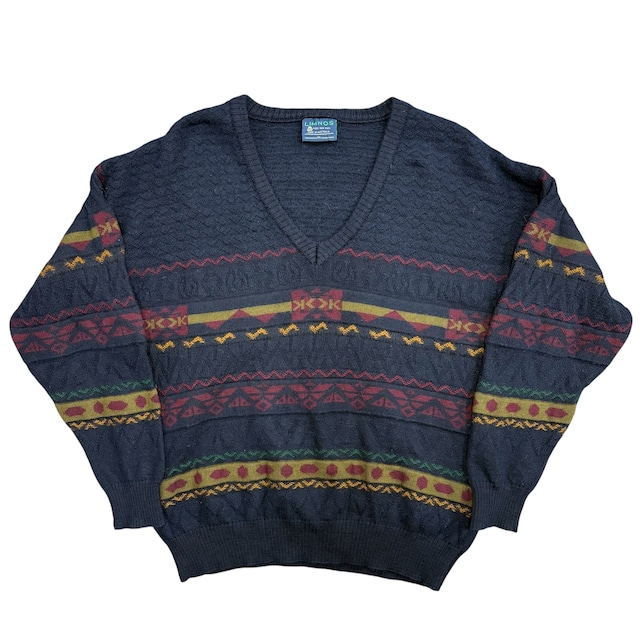 80s 90s LIMNOS オーストラリア製 ネイティブ柄Vネックニット