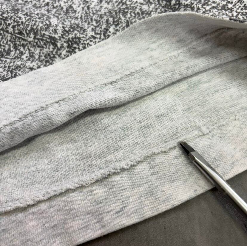 左半身は無地、右半身はモノクロノイズ調の総柄で大胆に切り替えたデザインに、筆記体のMcDonald’sロゴが映える一枚。