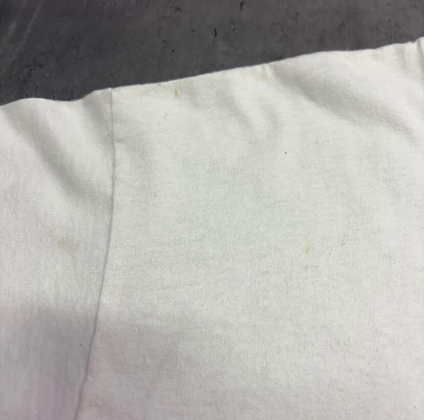 ボディはFruit of the LoomのHEAVY COTTON製。柔らかさのある綿100%で、程よく肉厚。クセのない白Tボディに、赤×黒のグラフィックが映える一枚です。