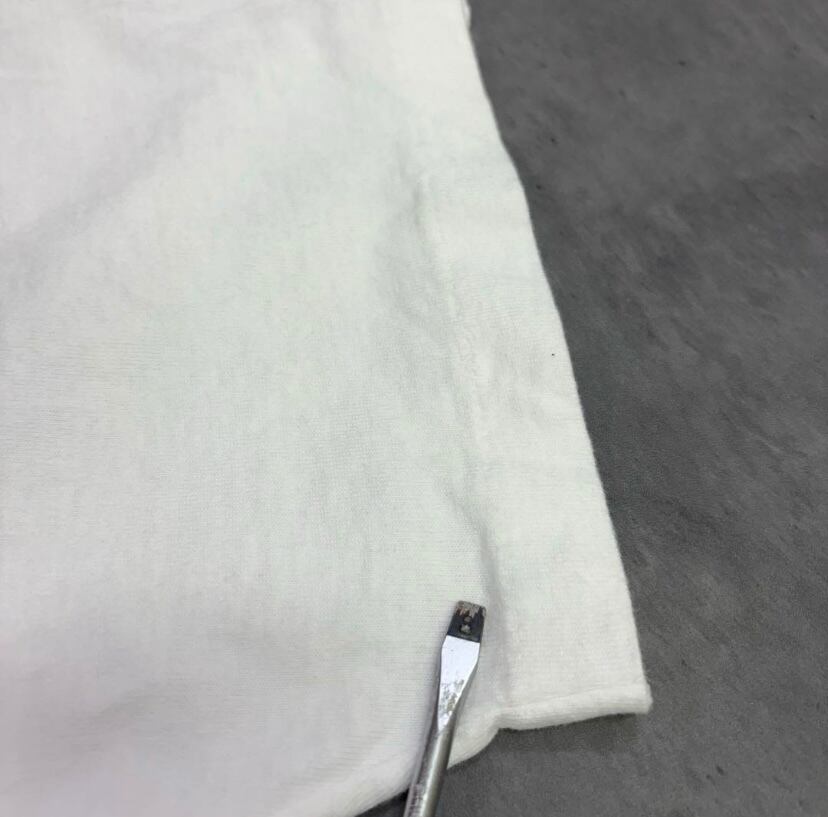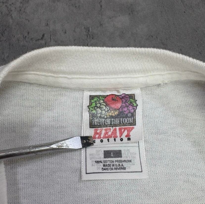 ボディはFRUIT OF THE LOOMのHEAVY COTTON製で、USA製。プリシュランク仕様で洗っても型崩れしにくく、ガシッとした90sらしい質感が魅力です。