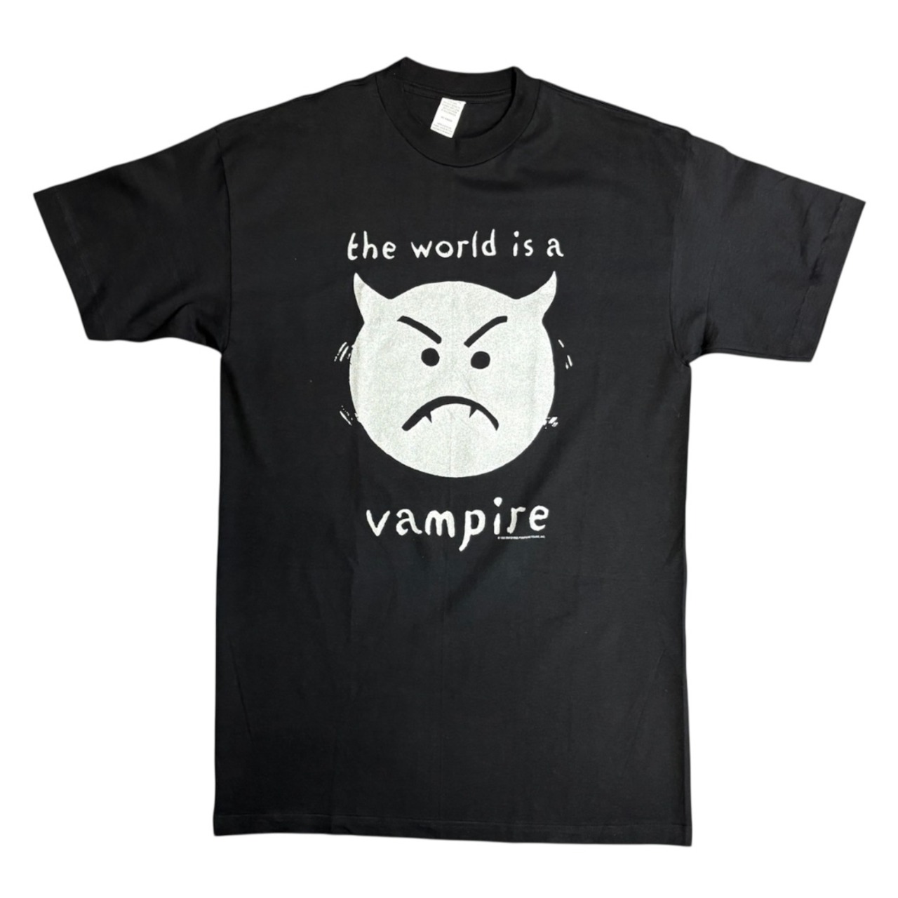 フロントには「the world is a vampire(世界は吸血鬼だ)」という名曲《Bullet With Butterfly Wings》の冒頭歌詞が印象的にプリントされ、怒り顔のヴァンパイア風キャラクターがユーモラスかつシニカルな印象を放ちます。