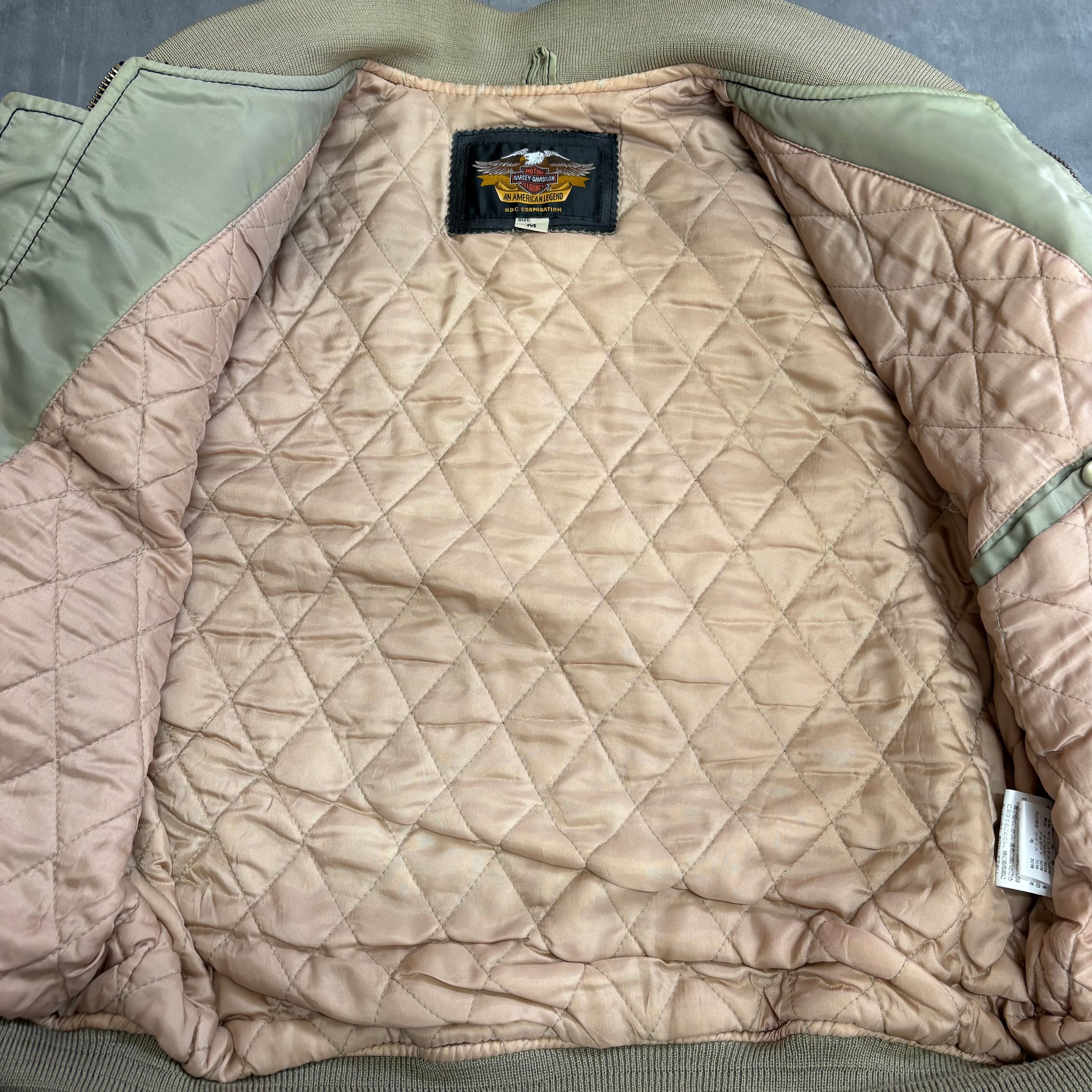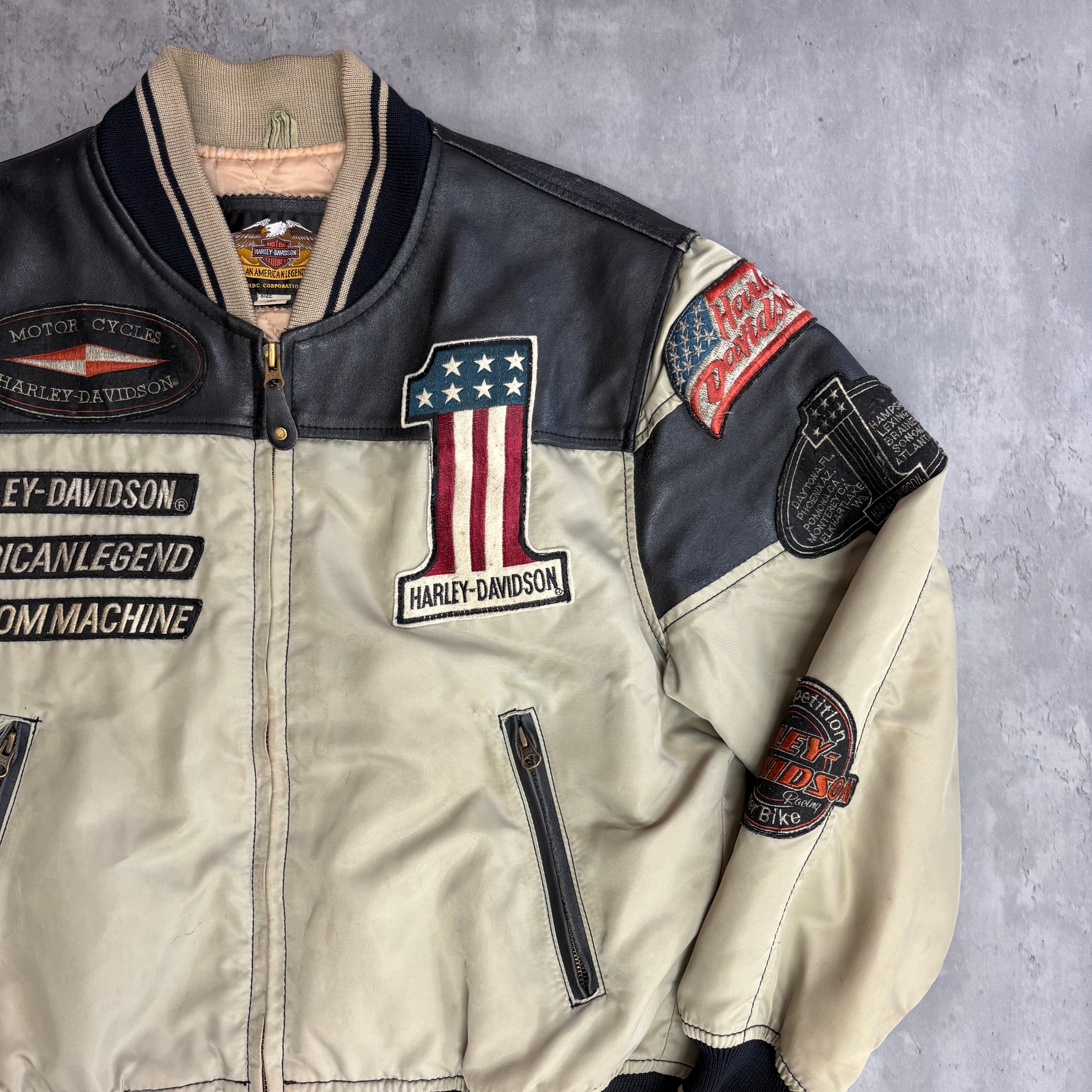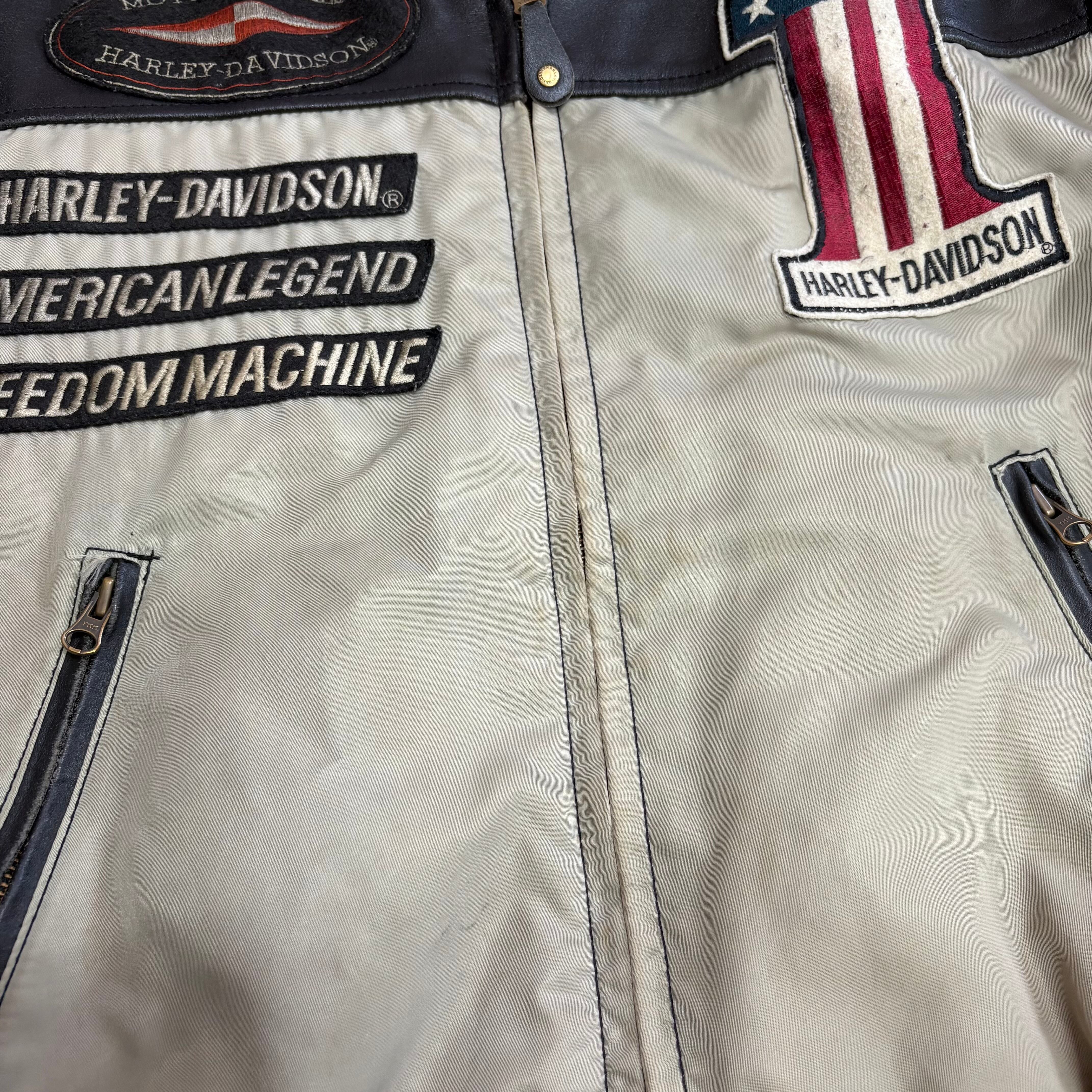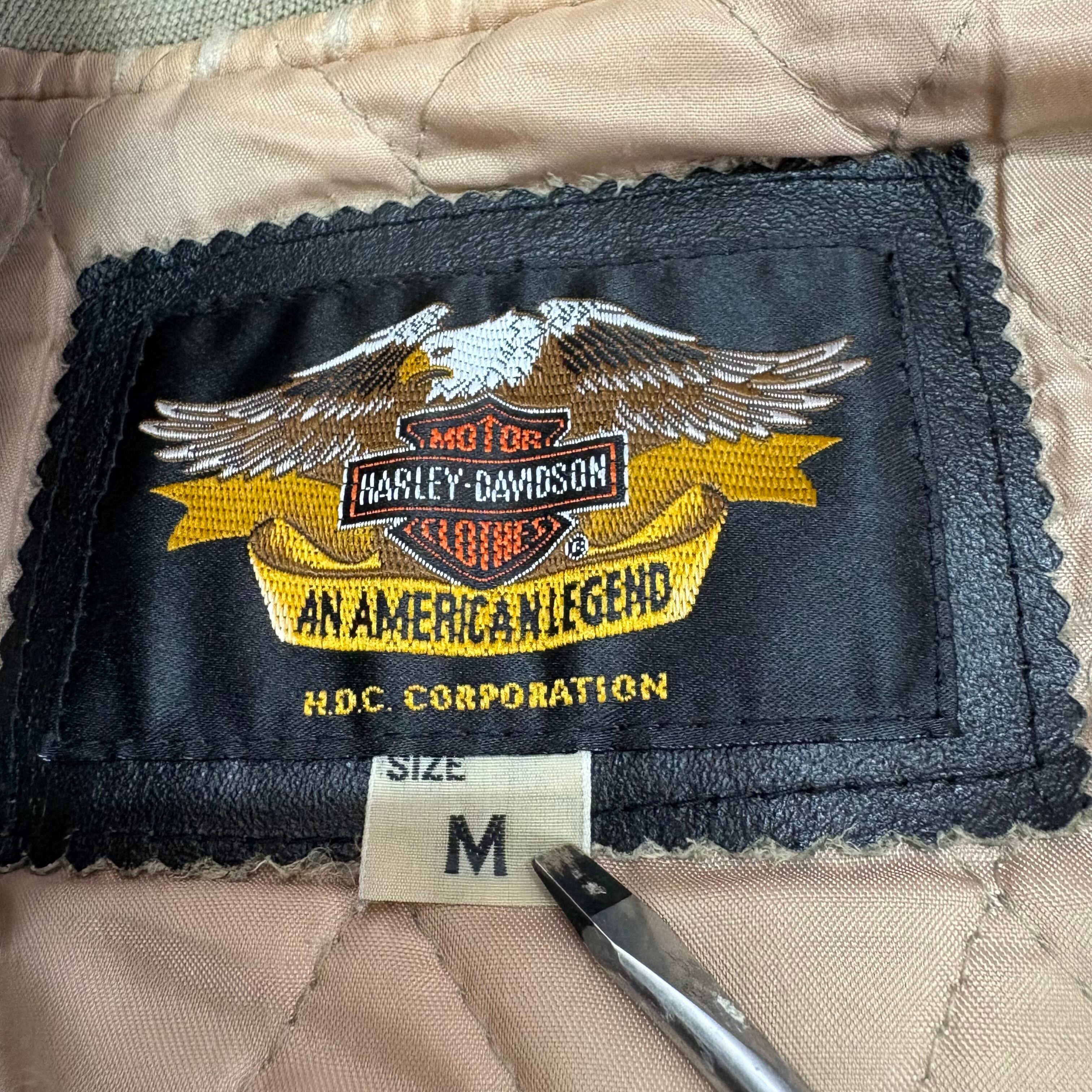 90年代らしいバイカーの雰囲気を纏った、ハーレーダビッドソンのワッペン刺繍ジャケット。