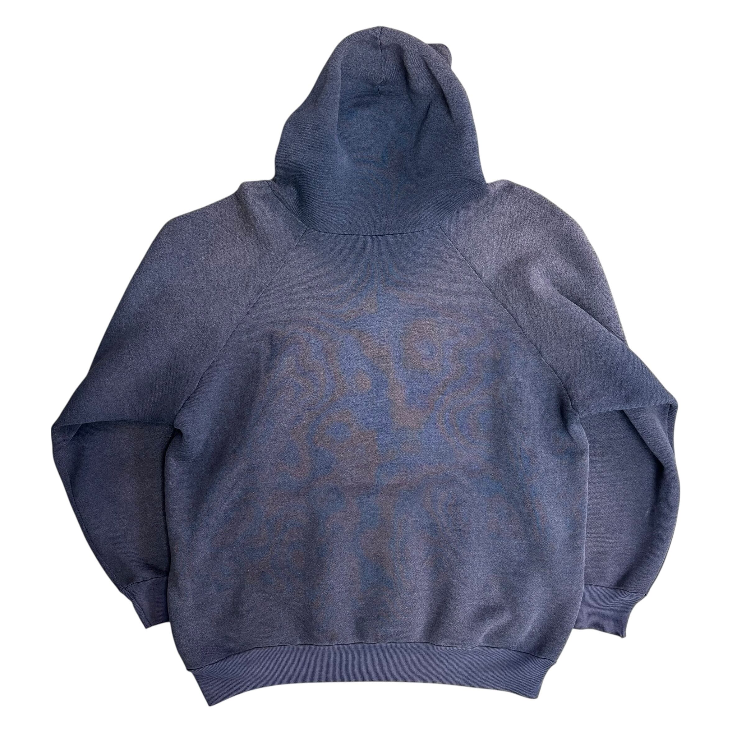 アメリカ・ニュージャージー州シーアイルシティにあるビーチタウン「Townsend’s Inlet」のスーベニアパーカー。フェード感のあるネイビーにアーチロゴが映える、クラシックなアメカジスタイル。ラグランスリーブで動きやすく、裏起毛で保温性もしっかり確保された一枚です。80s初頭の王道USメイド、タフで雰囲気ある古着好きにはたまらない仕様。