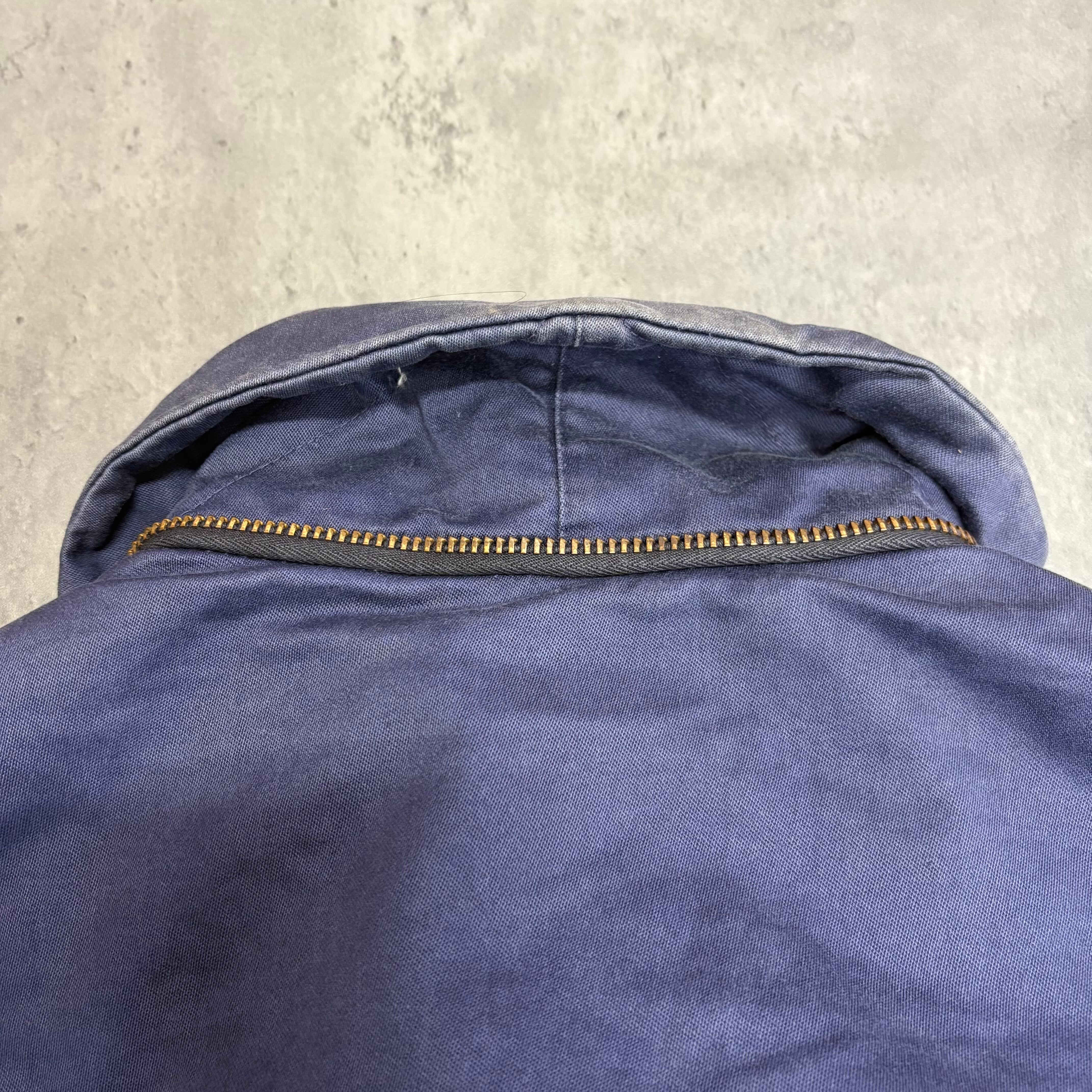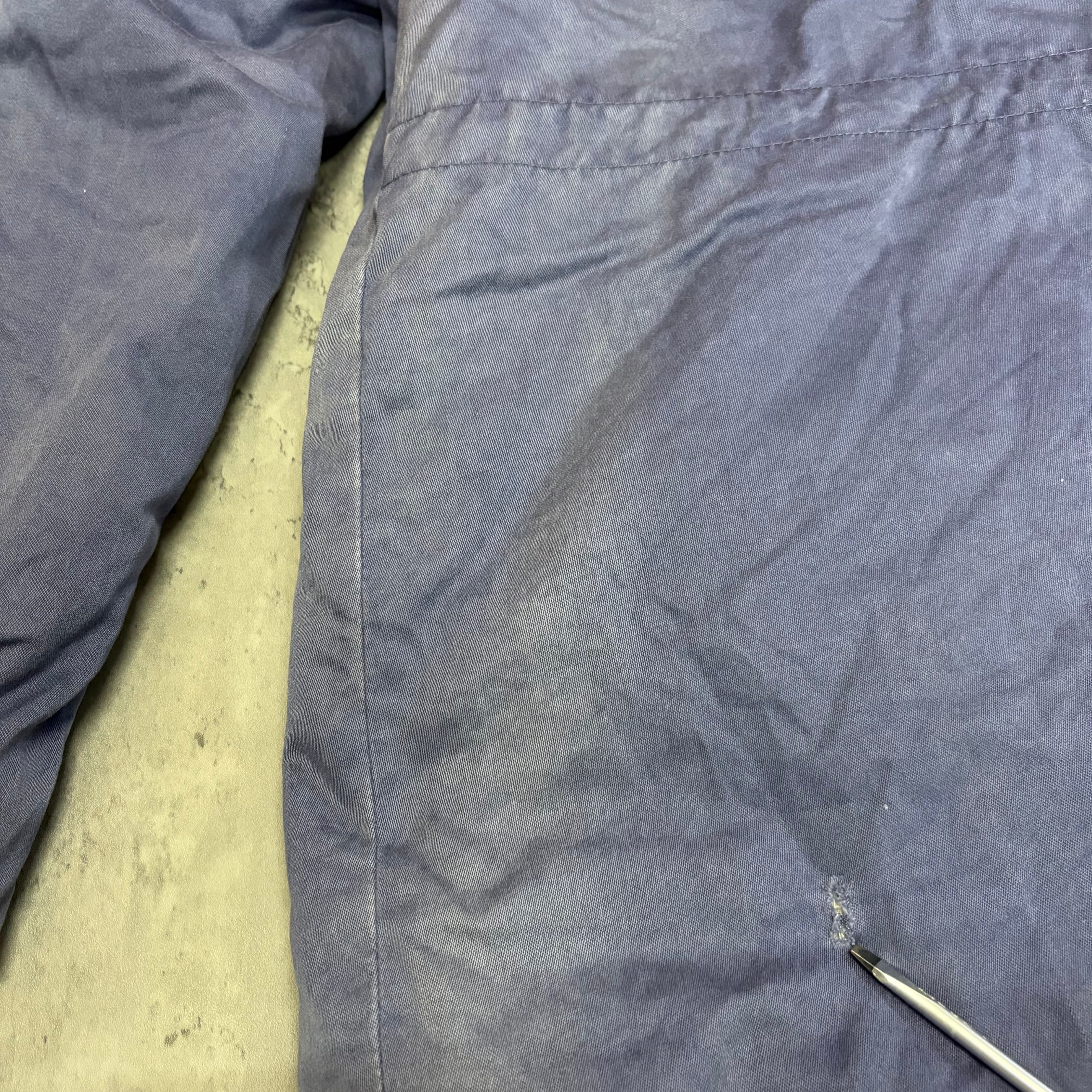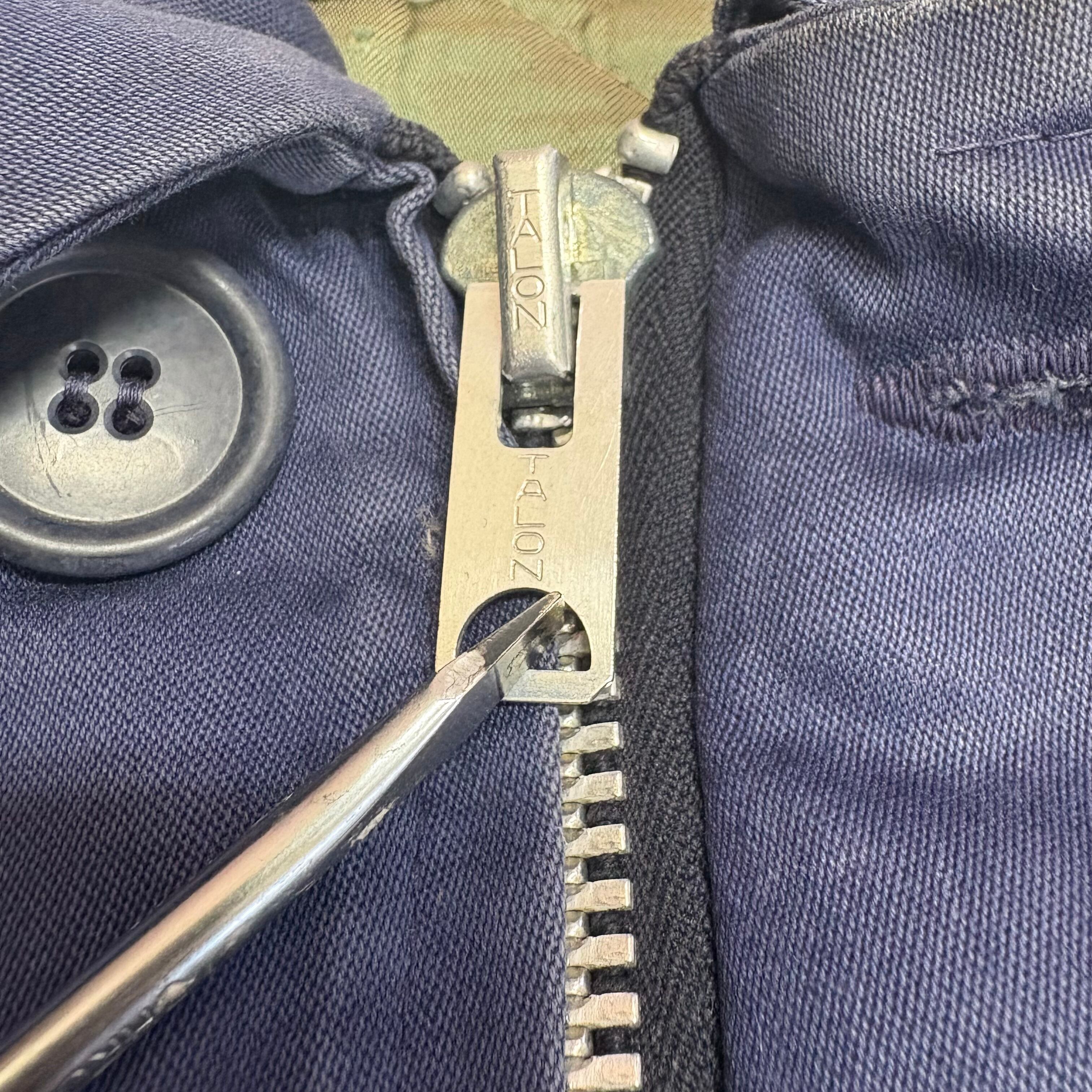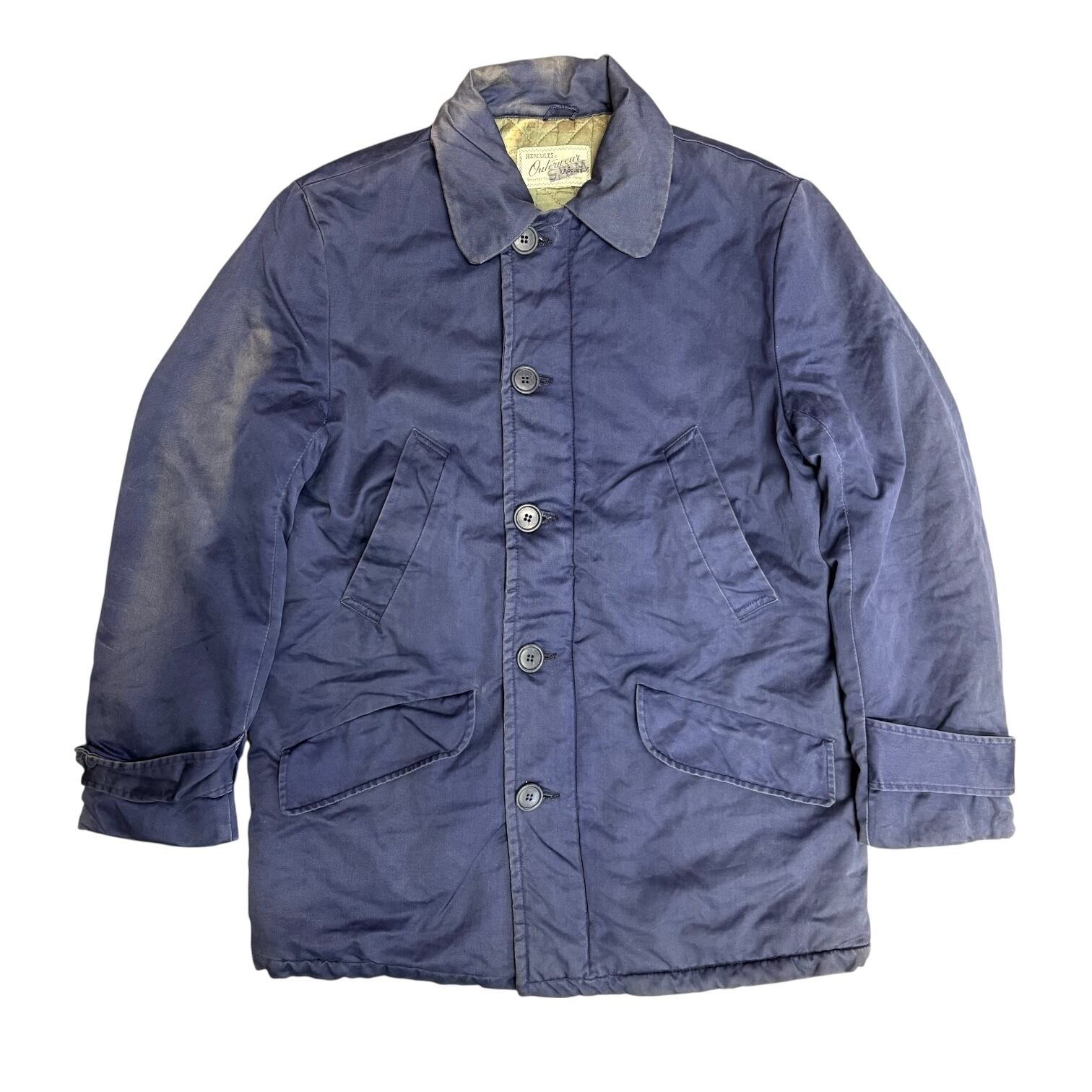 Sears傘下“HERCULES”によるワーク&カジュアル向けのB-9型シルエット。40s USAAFの名作「B-9フライトジャケット」をベースにした民間アウトドア仕様で、ボタン×TALONジップの二重前立て、ダイヤキルトの中綿ライナーを搭載。軍モノ直系の無骨さに、タウンユースの実用性を掛け合わせた一着です。濃紺がフェードした雰囲気は、まさにヴィンテージならでは。