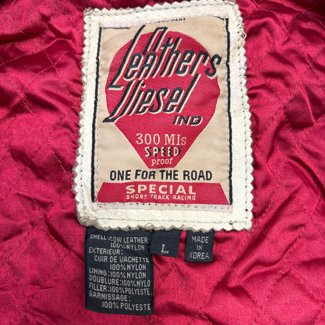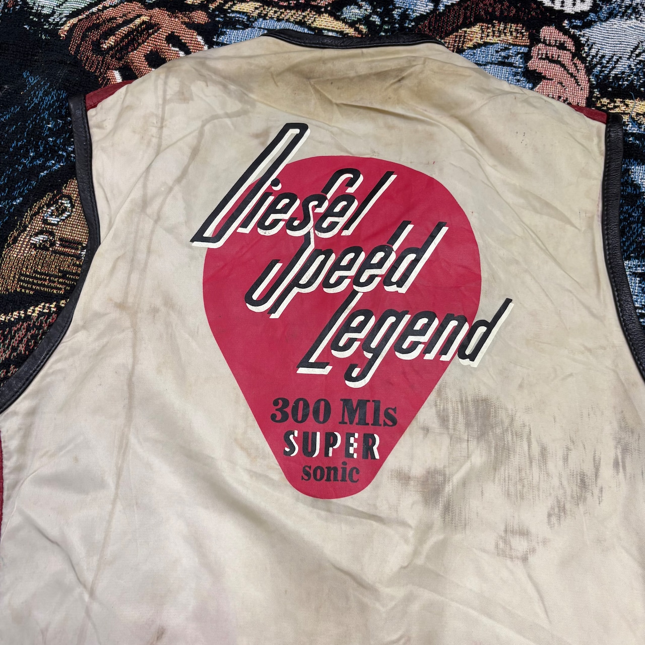 フロントには「LUCKY LEATHER」「DSL SPEED」のワッペン刺繍、背面には大きく「Diesel Speed Legend」のプリントが入った迫力あるデザイン。