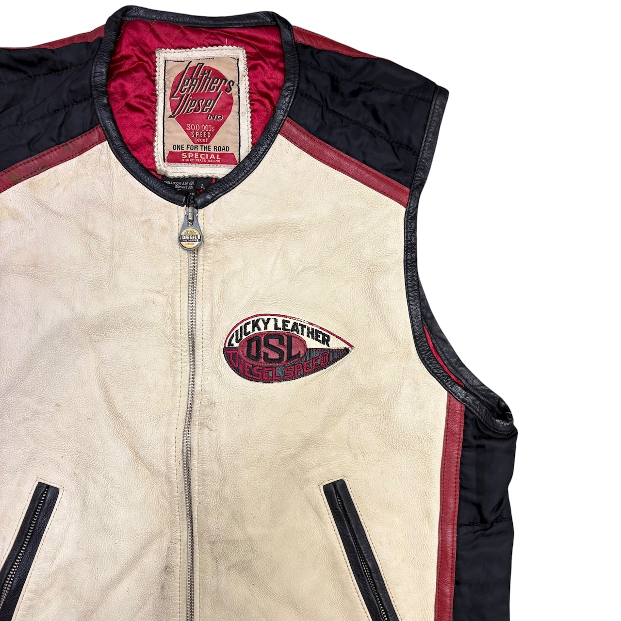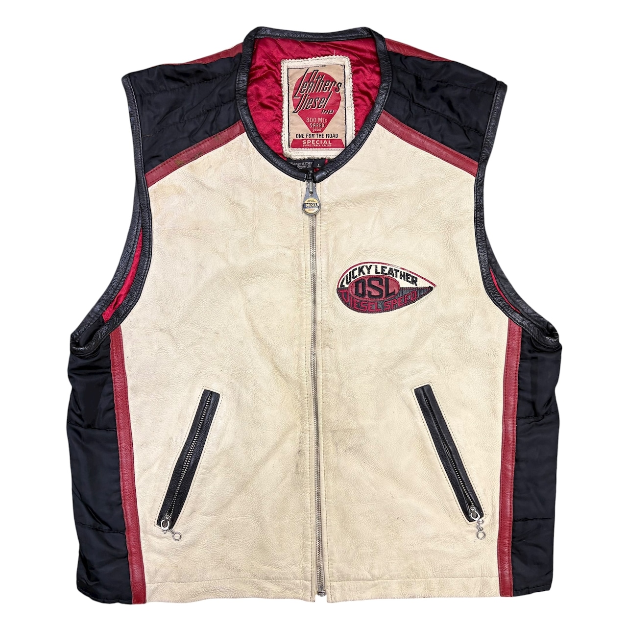 90s〜00s初期のDIESELらしい、バイカーライクなレザーベスト。