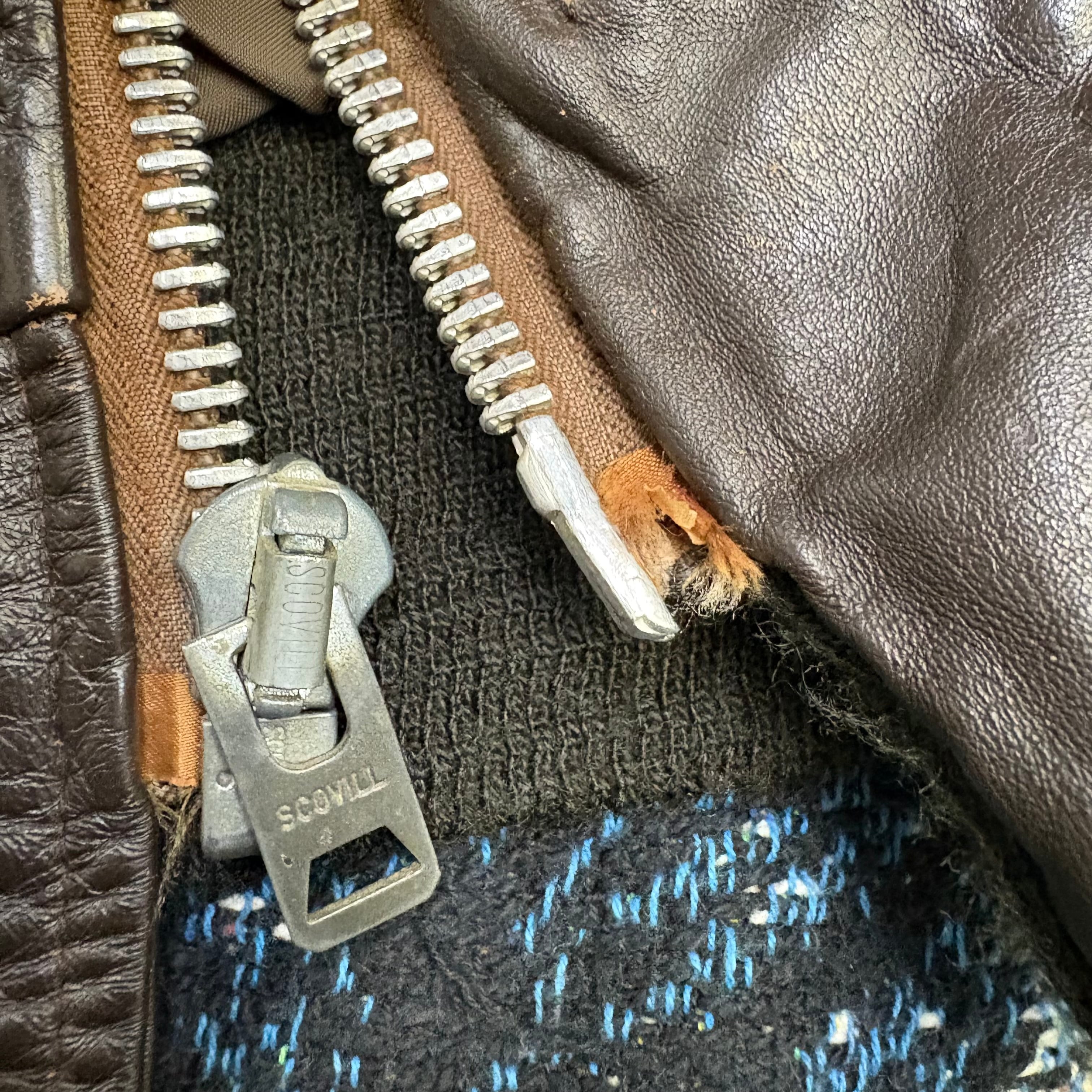 厚みのあるステアハイドレザーに、SCOVILLジップ、エポレット付きの無骨なA-2スタイル。