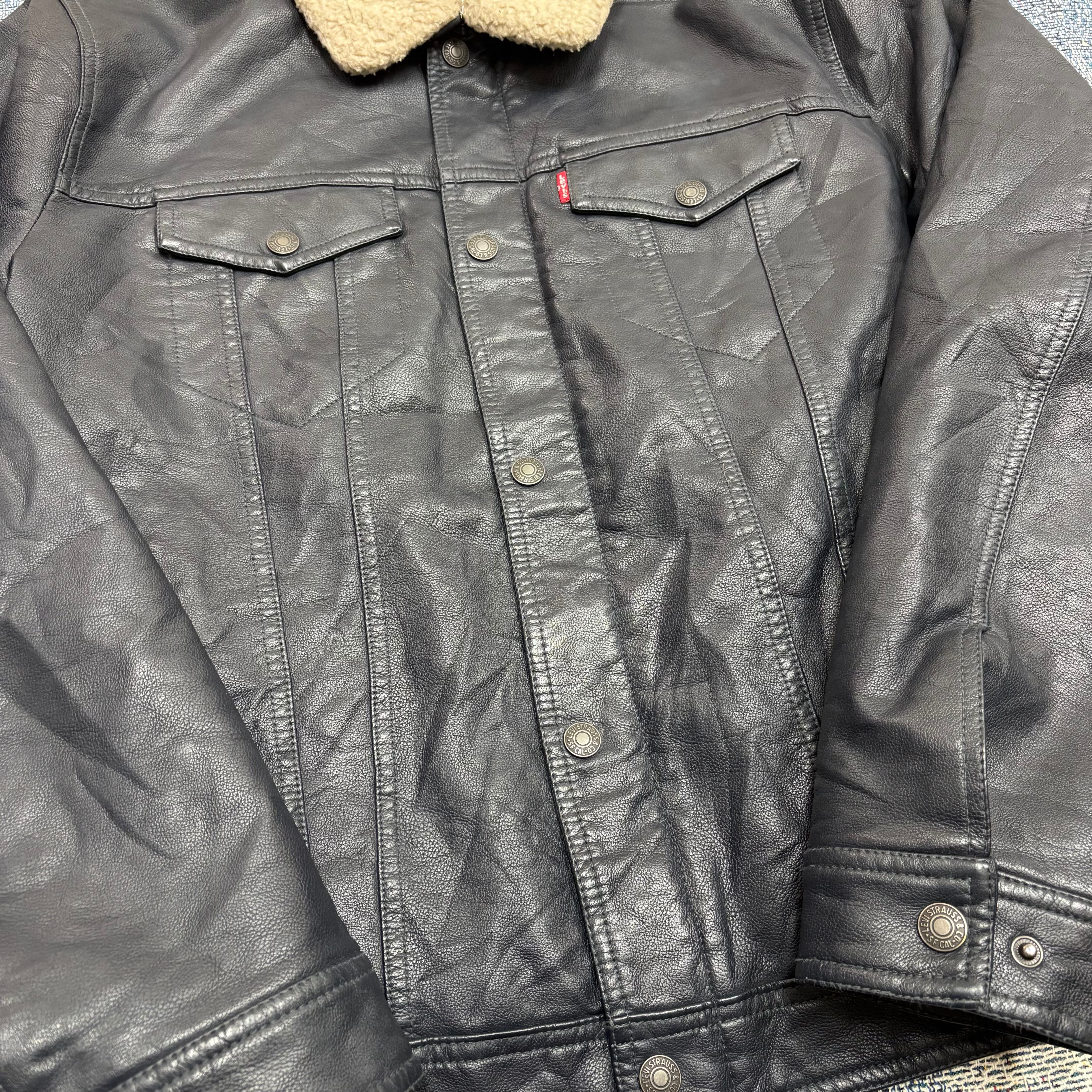 Levi's シェルパ フェイクレザー トラッカージャケット ブラック XL
