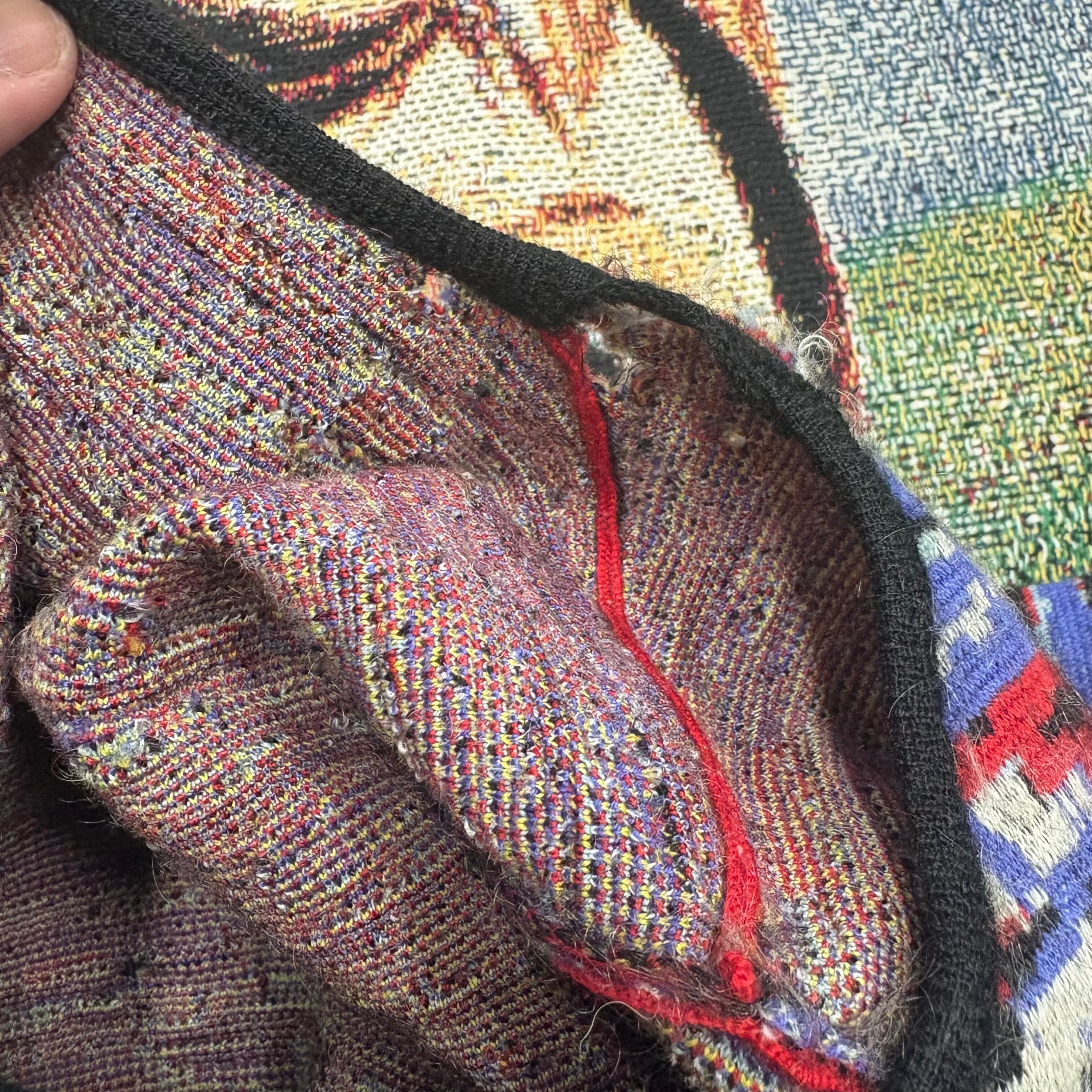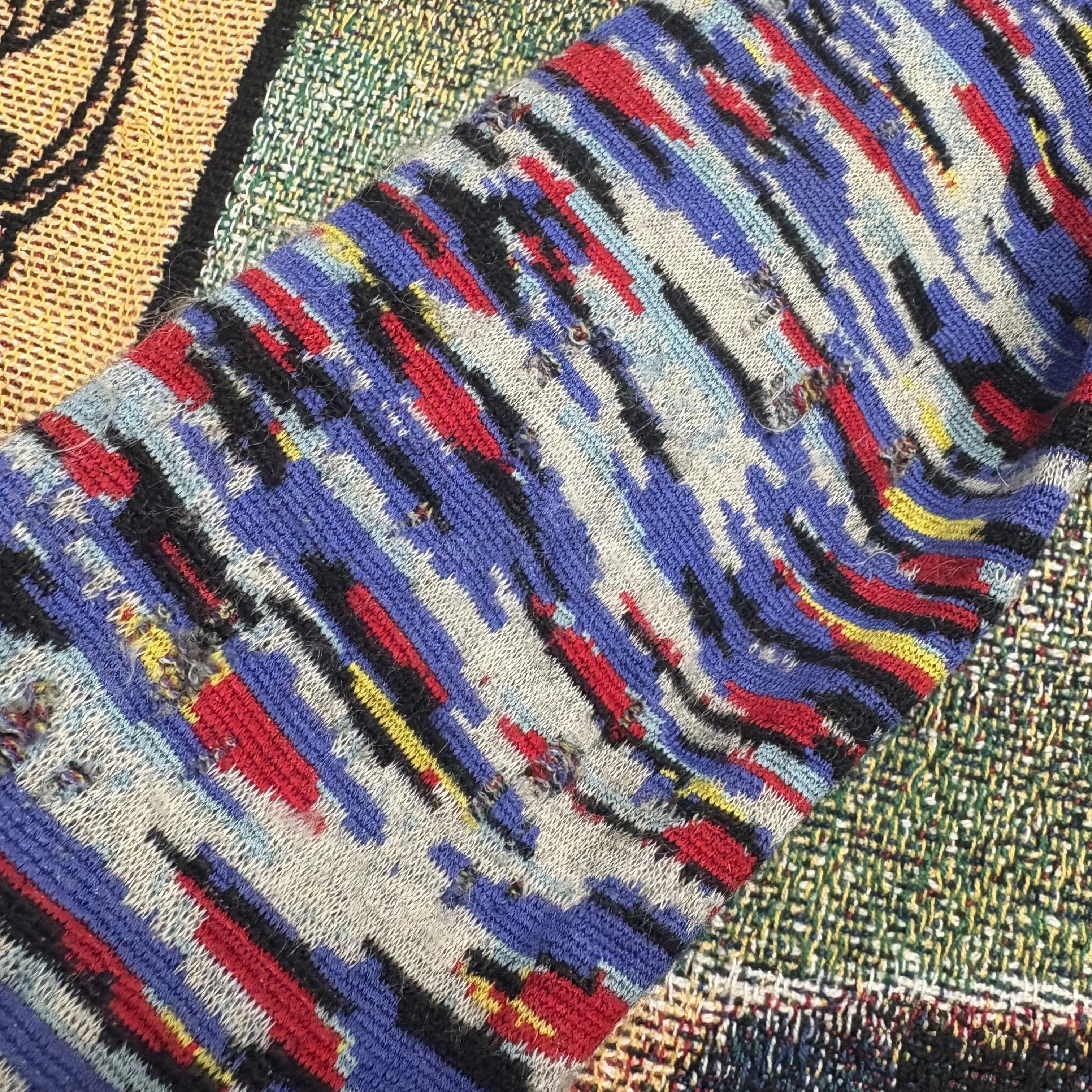 アートピースのようなミックスパターンニット。