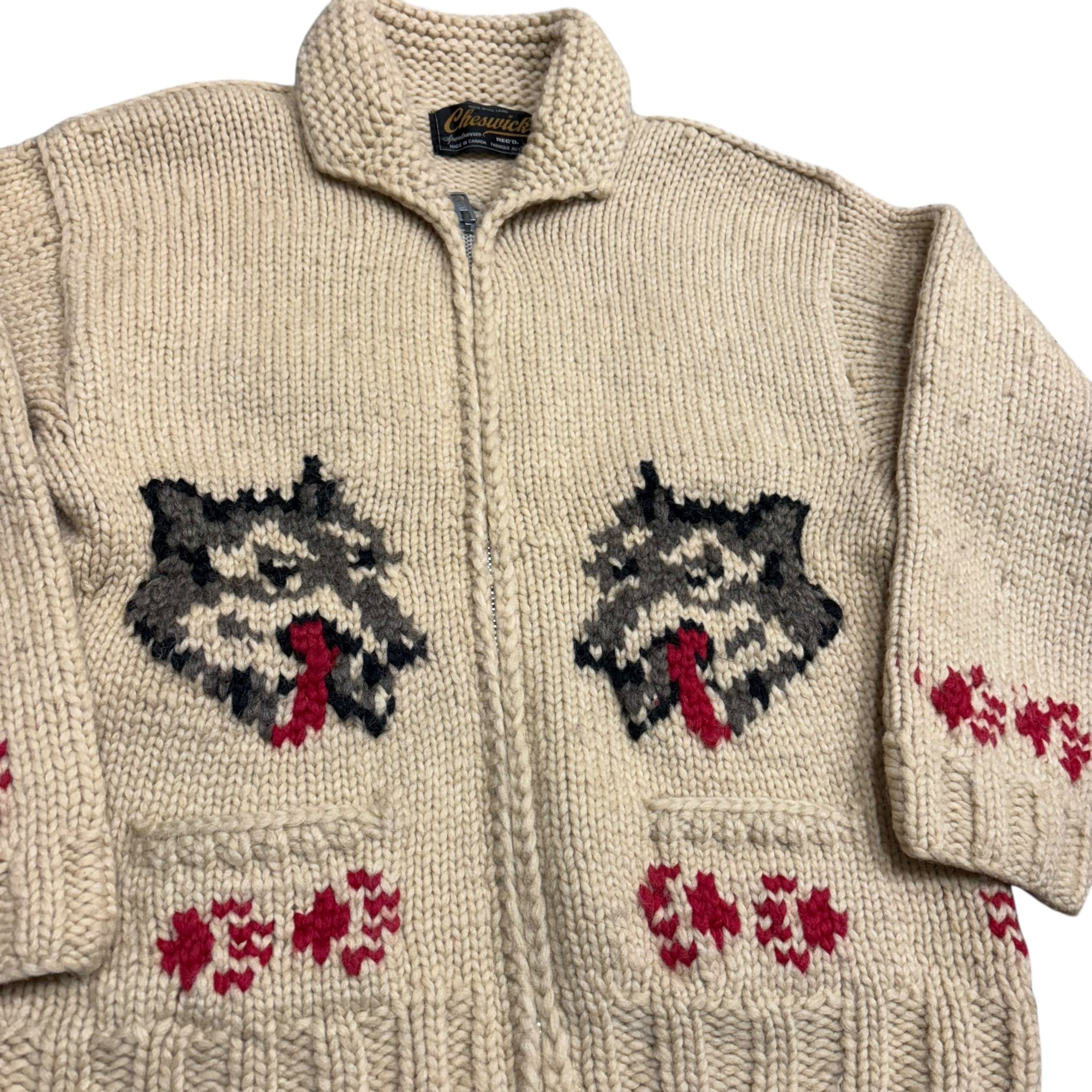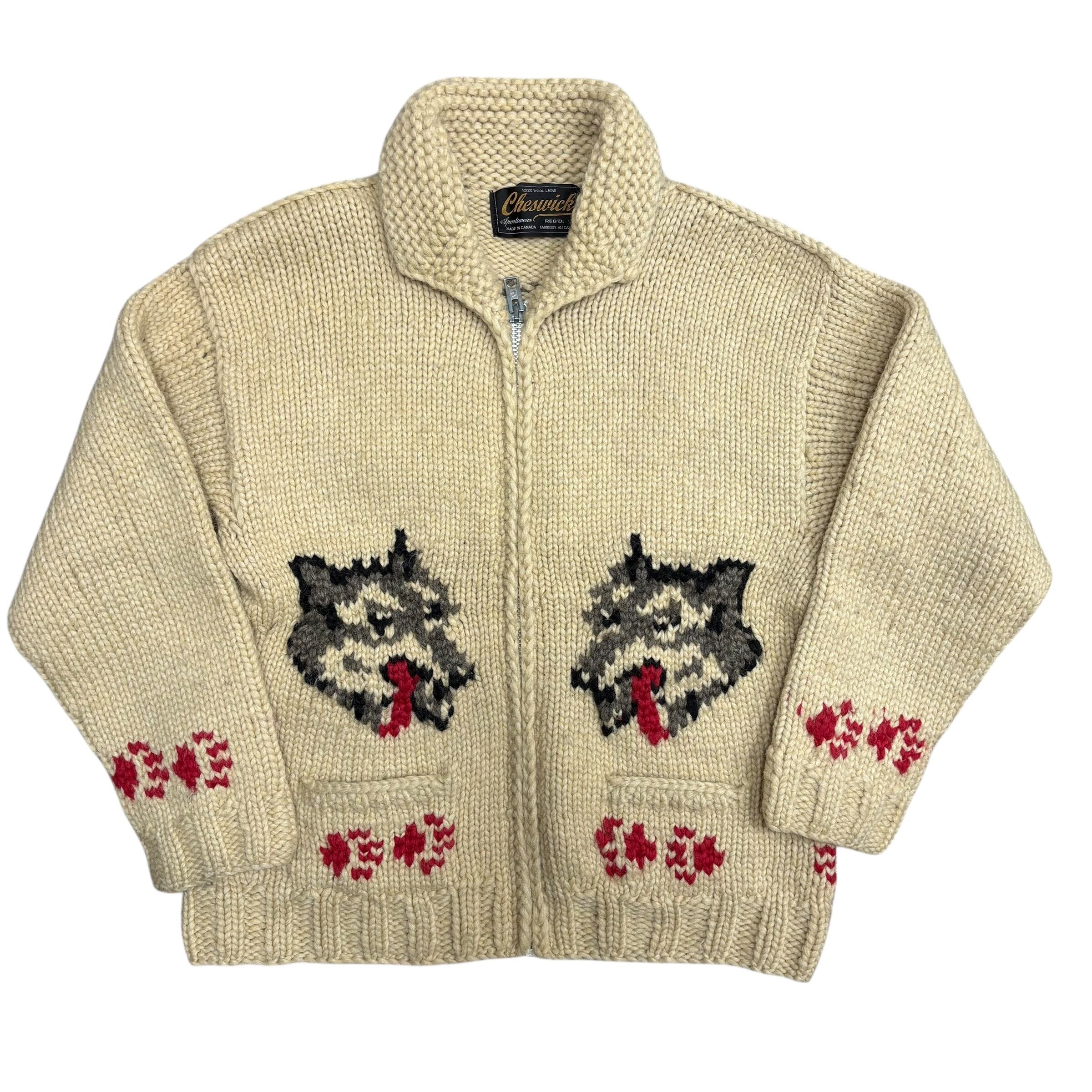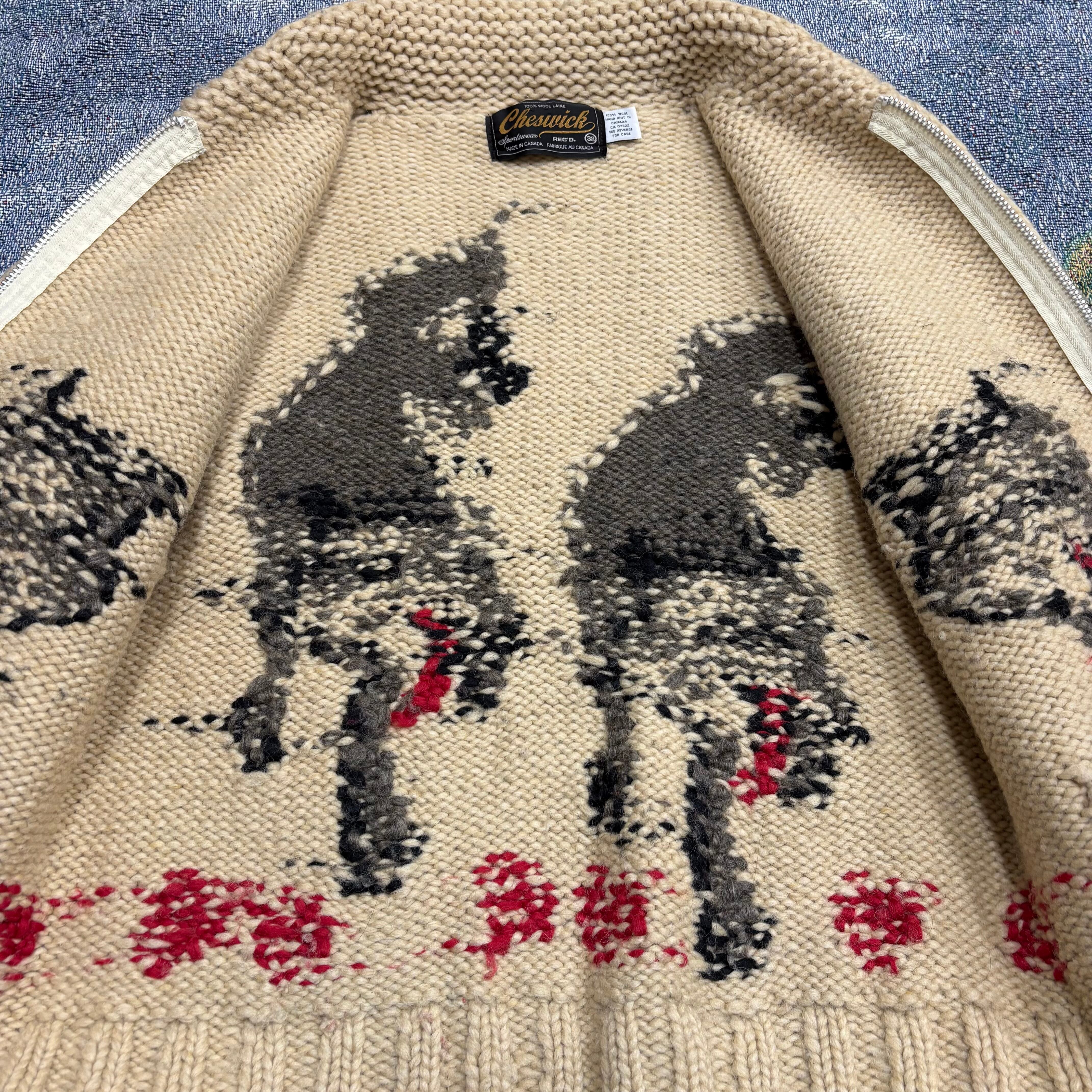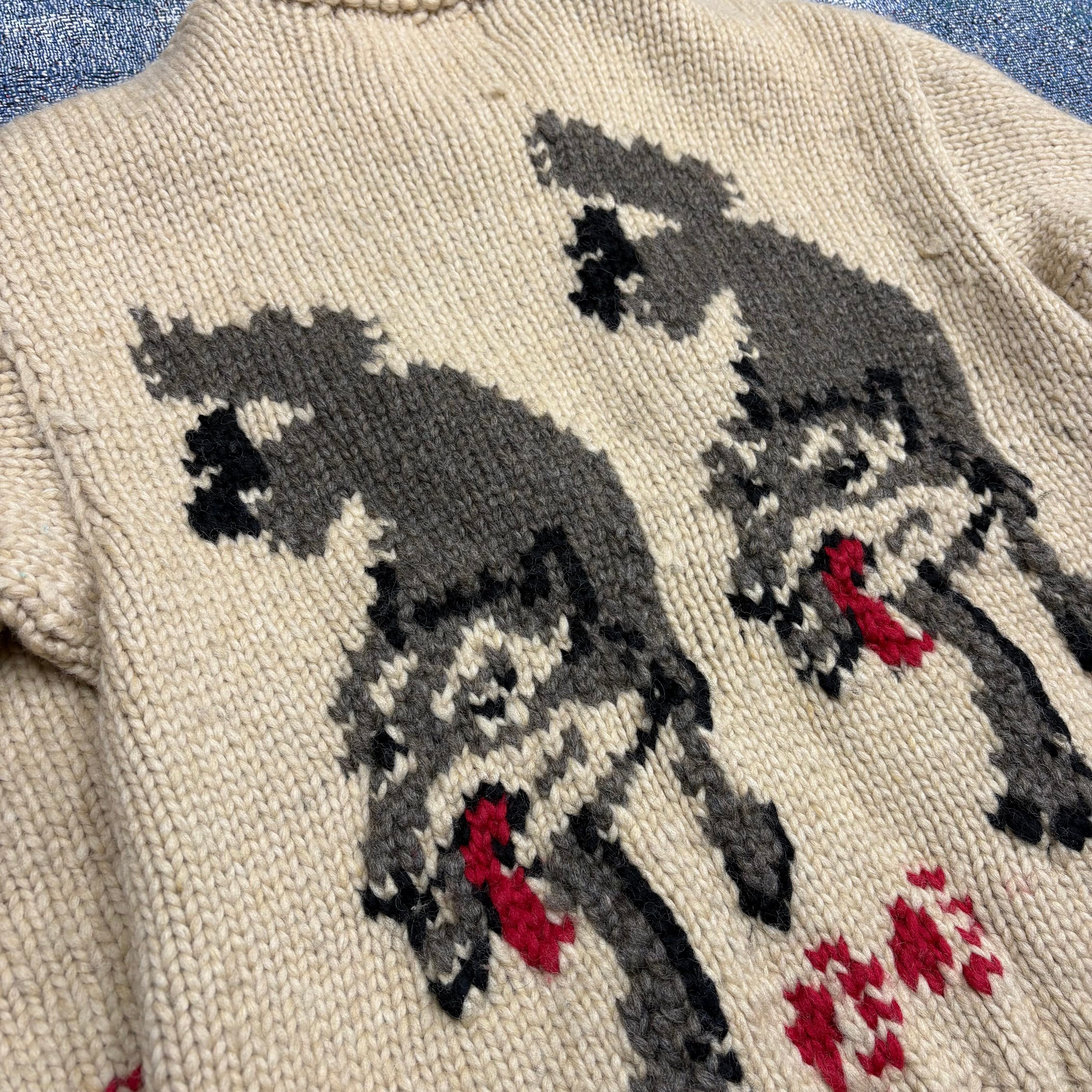 70s vintage 狼 ウルフ柄 カウチンニット Cheswick