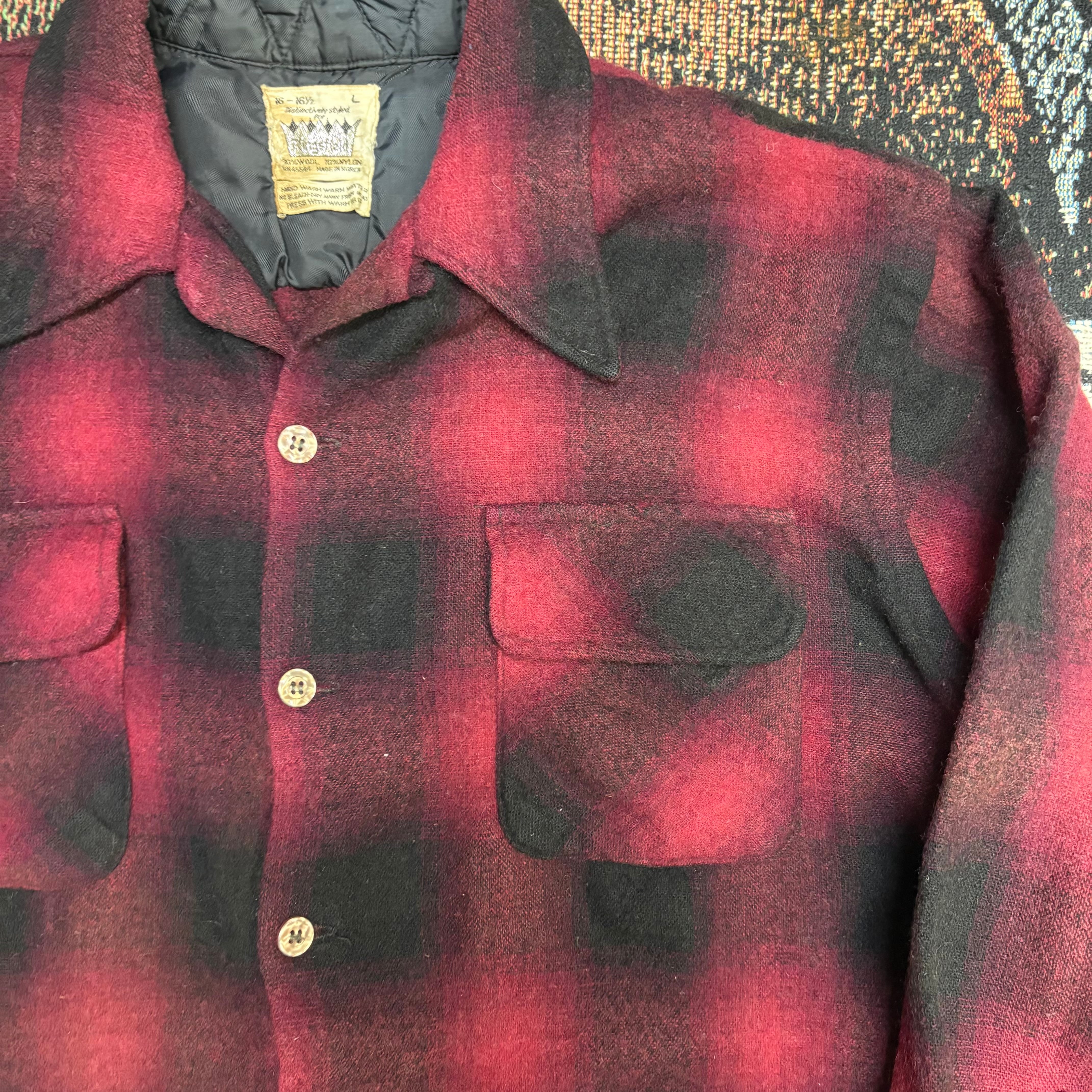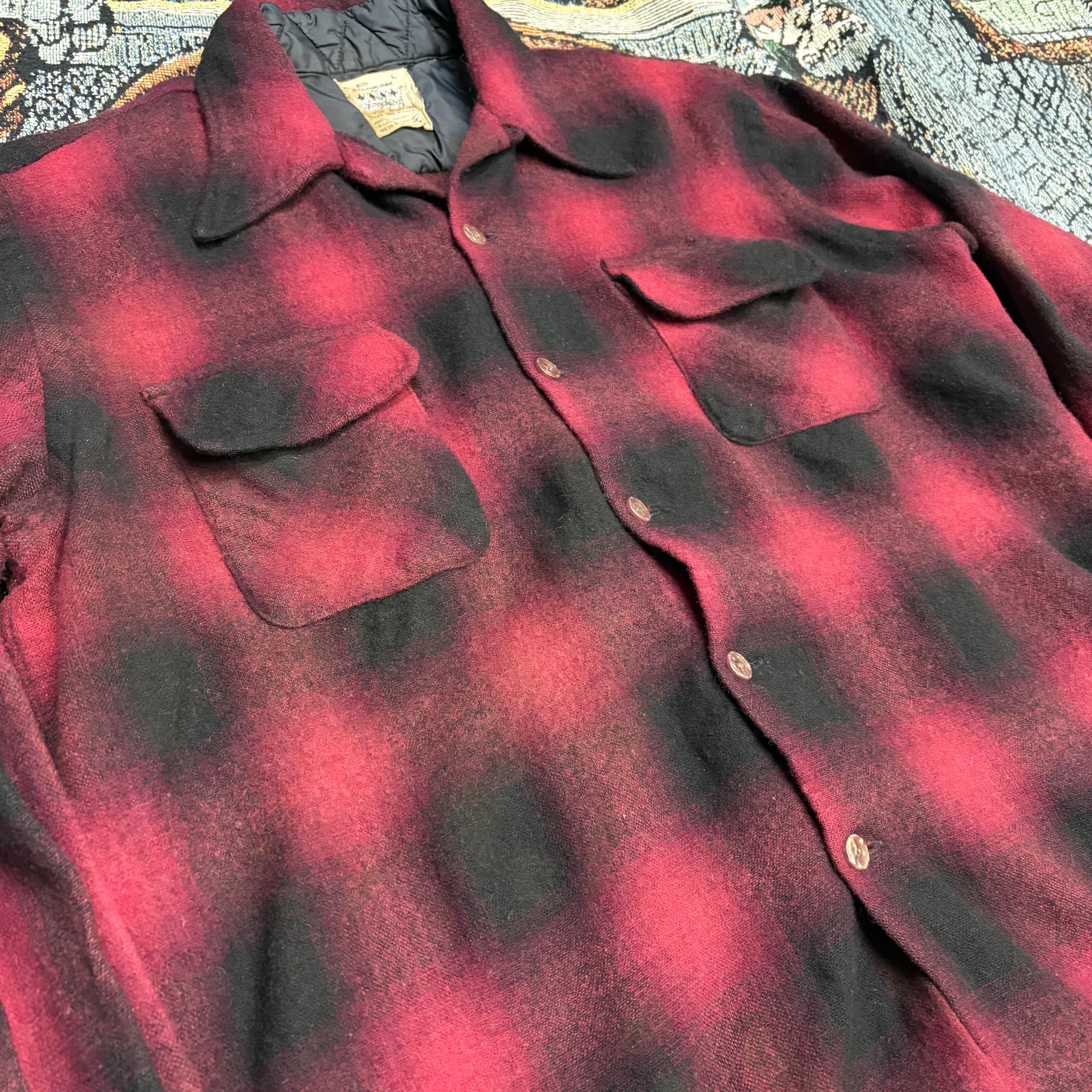 60s 70s Kingsfield オンブレ ボードシャツ 開襟シャツ ウール