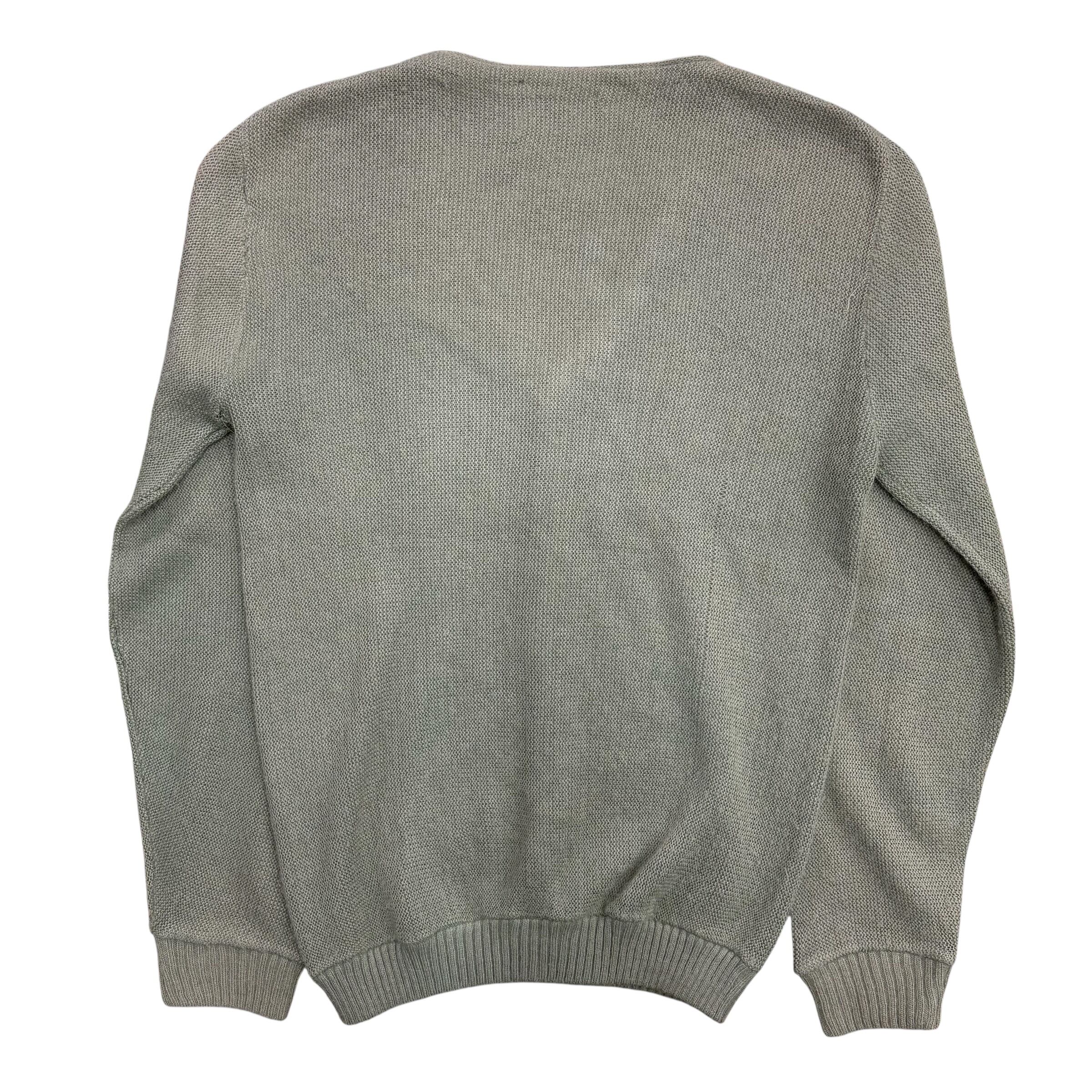 から、渋いオリーブグレーのVネックカーディガン。