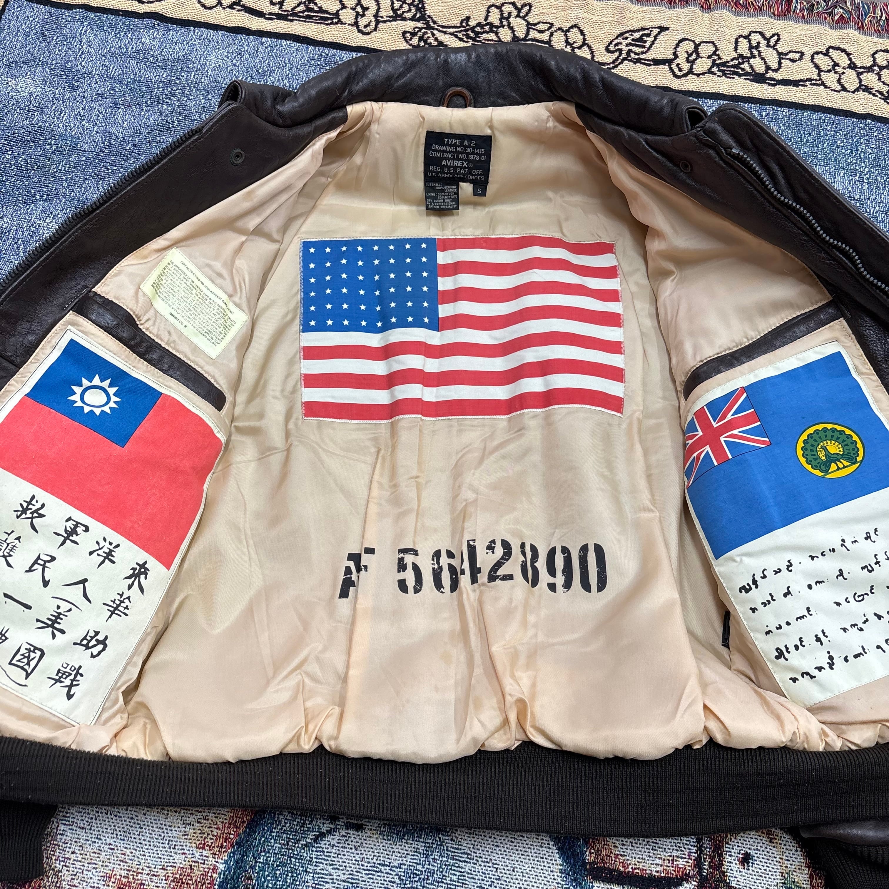 90s AVIREX A-2 Wild Fireレザーフライトジャケット