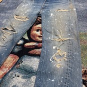 長年の作業で付いたペンキ飛び、ヒゲ、縦落ち、クラッシュが合わさった一本。