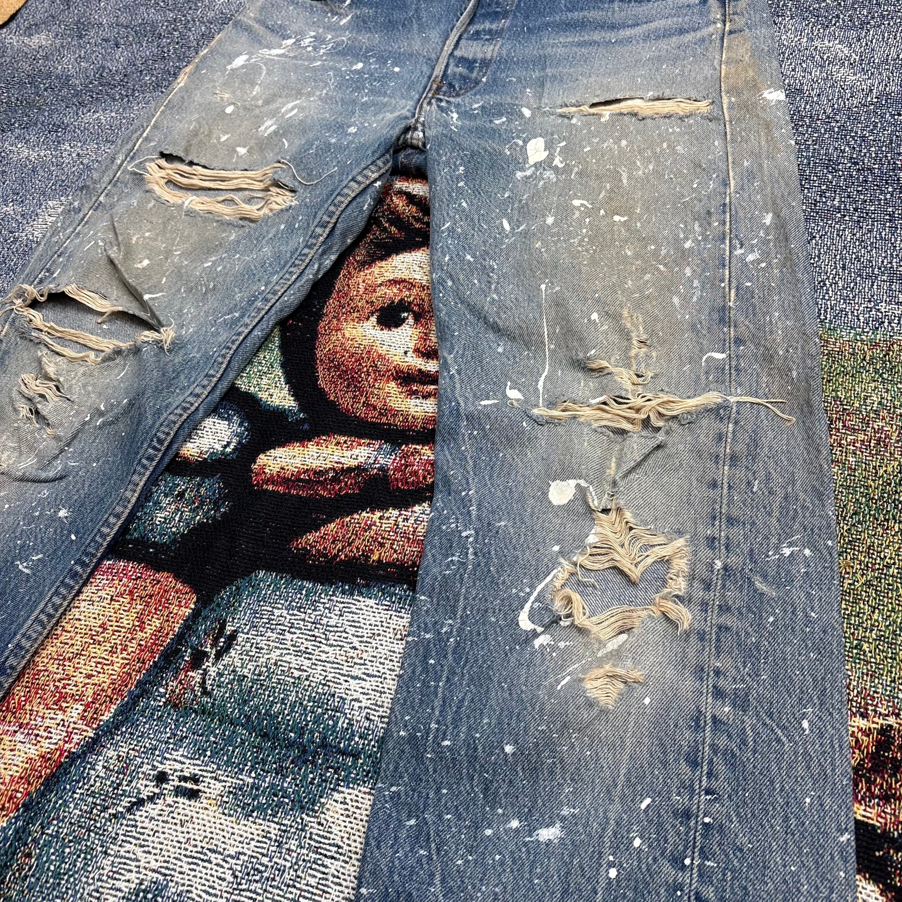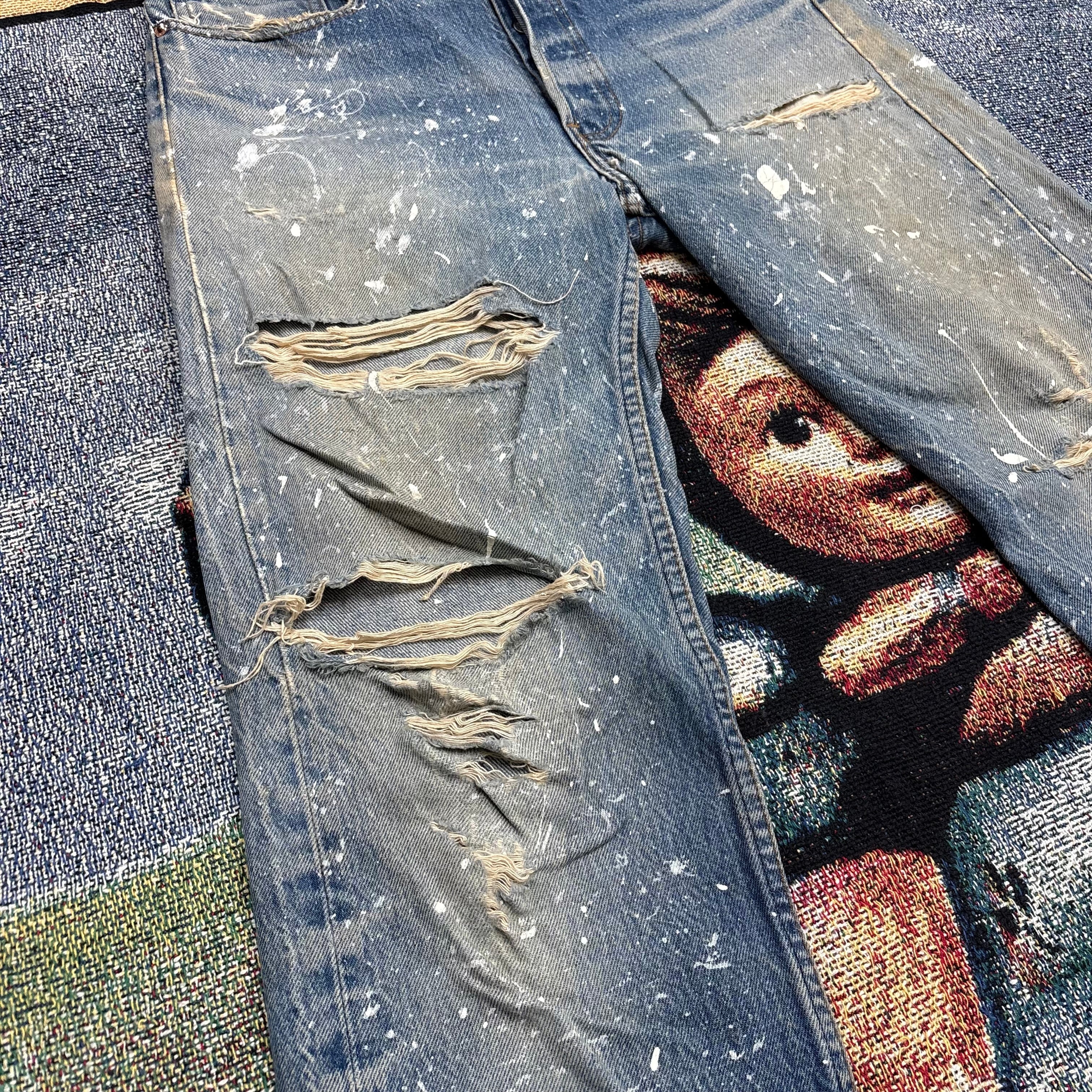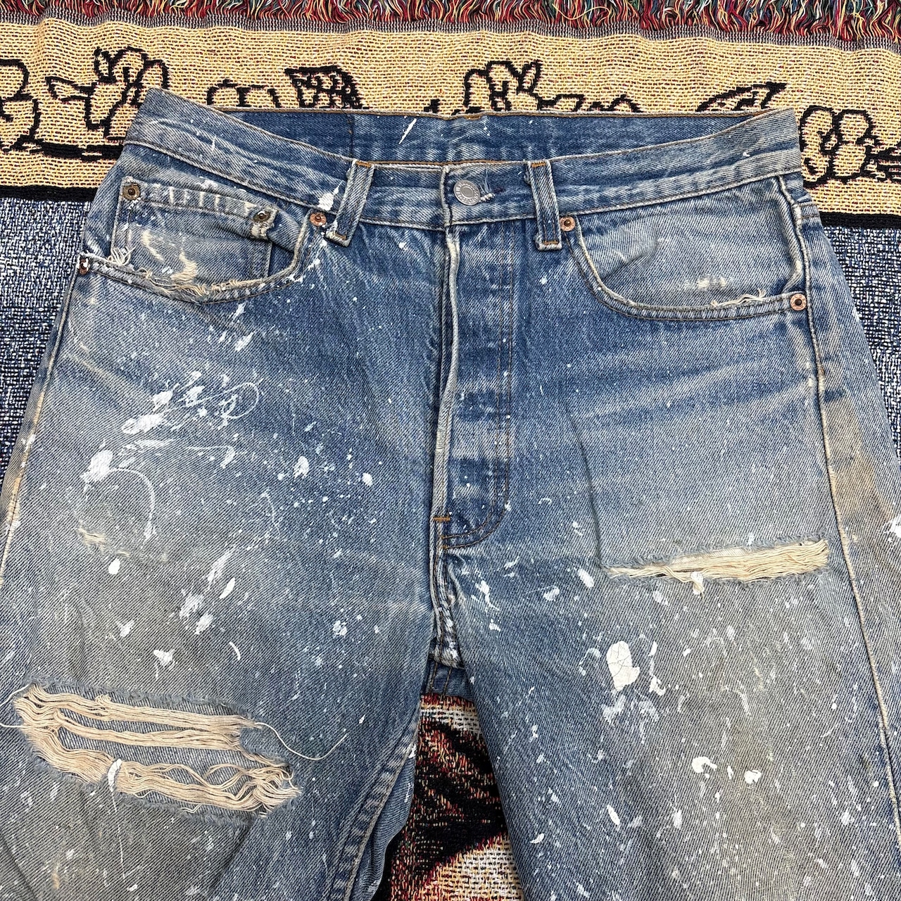 80s usa製 Levi’s 501 ペンキ飛び&クラッシュ 脇割り デニム