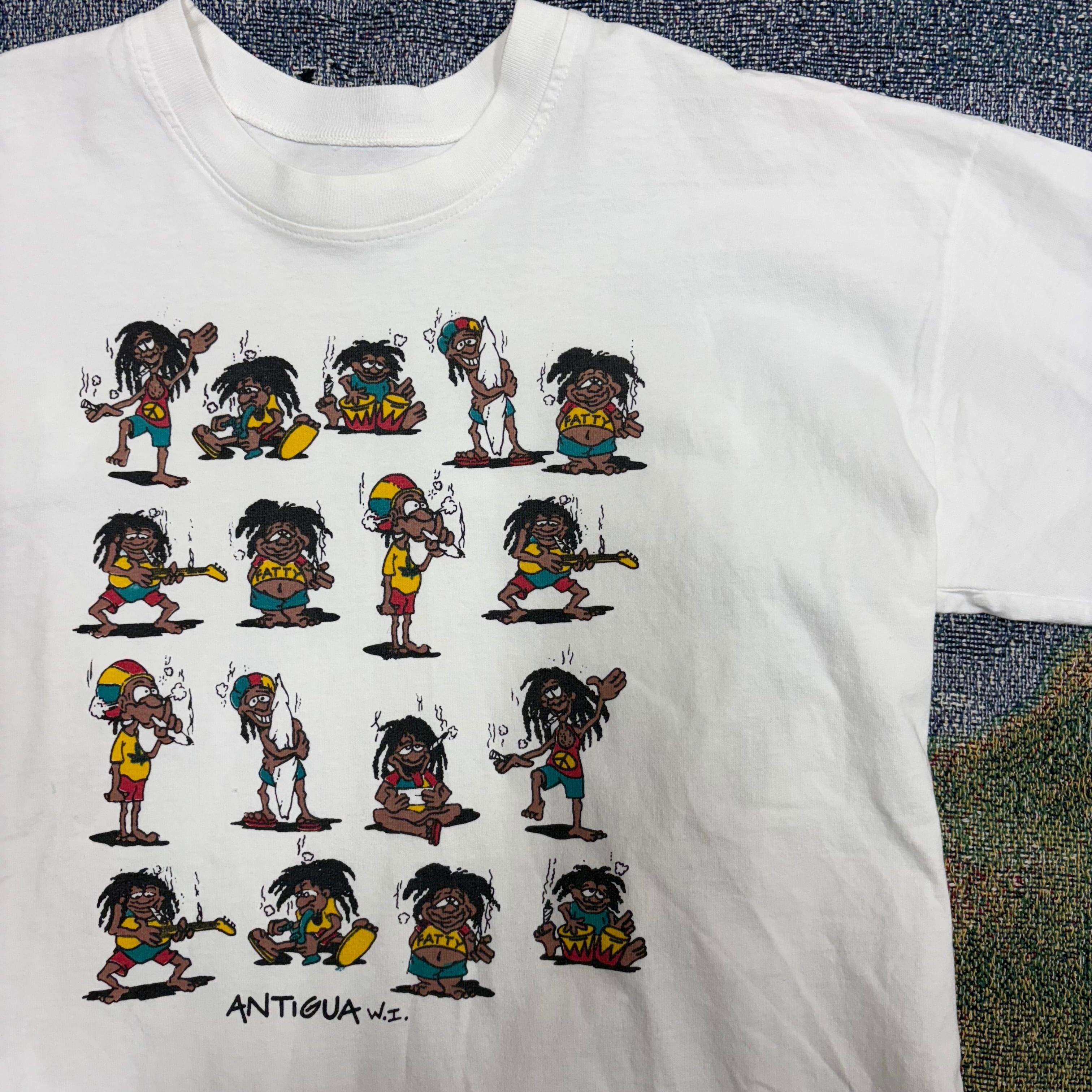 90s ANTIGUA W.I. ラスタキャラクター マ⚪︎ファナ tシャツ