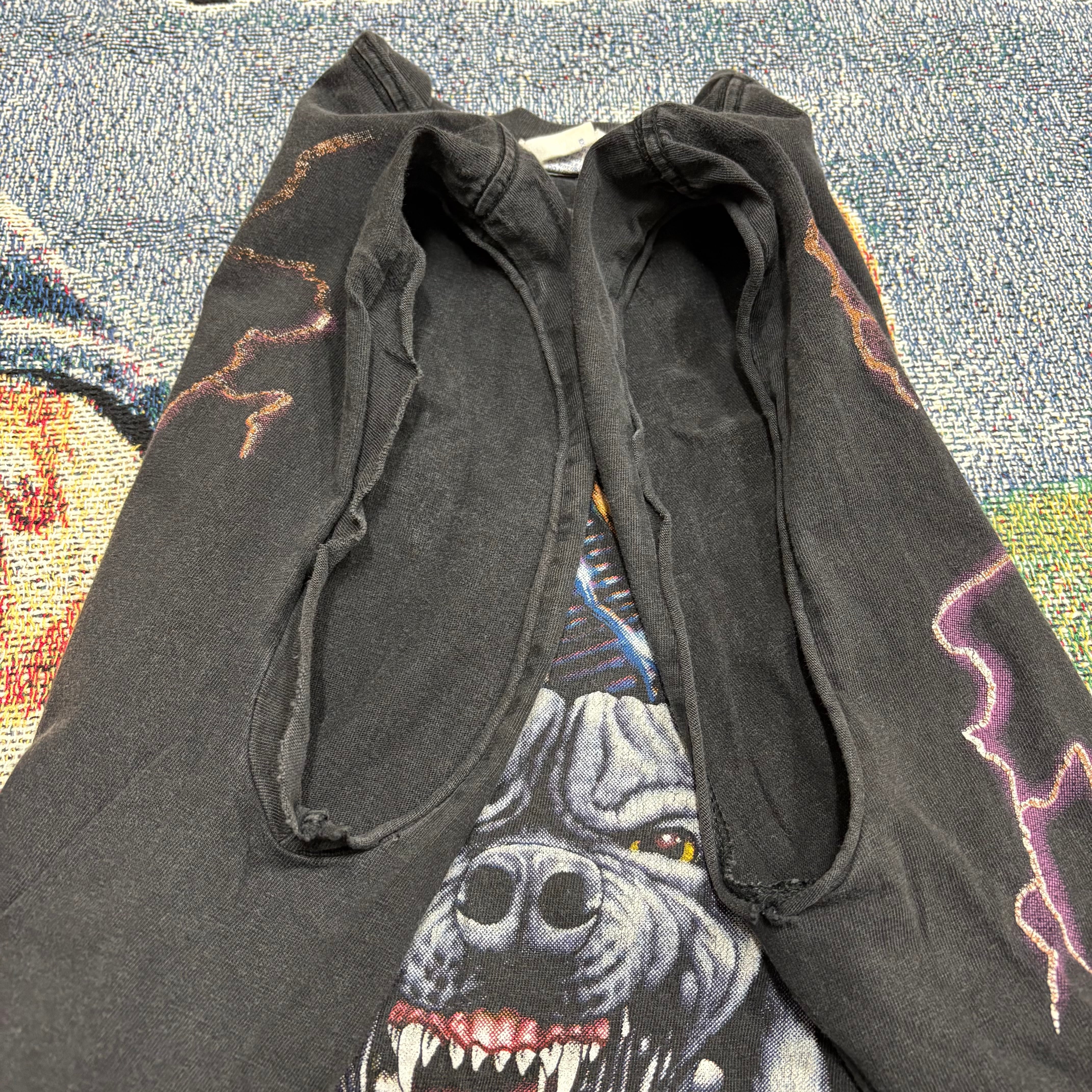 さらにバックには“AMERICAN THUNDER”のロゴとイーグル。前後でしっかり完成されたプリント構成になっており、まさにアメリカンバイカー系Tシャツの王道デザイン。
