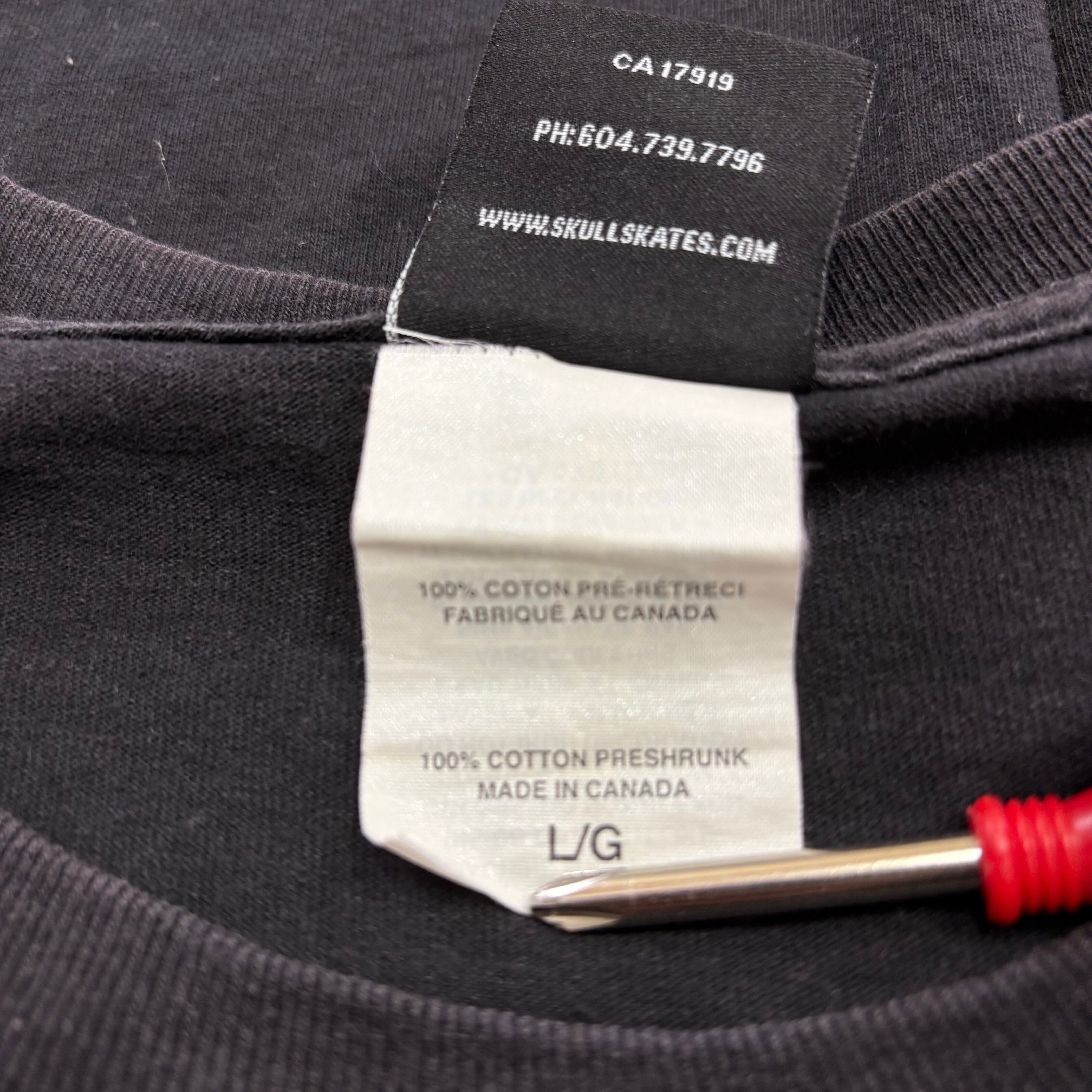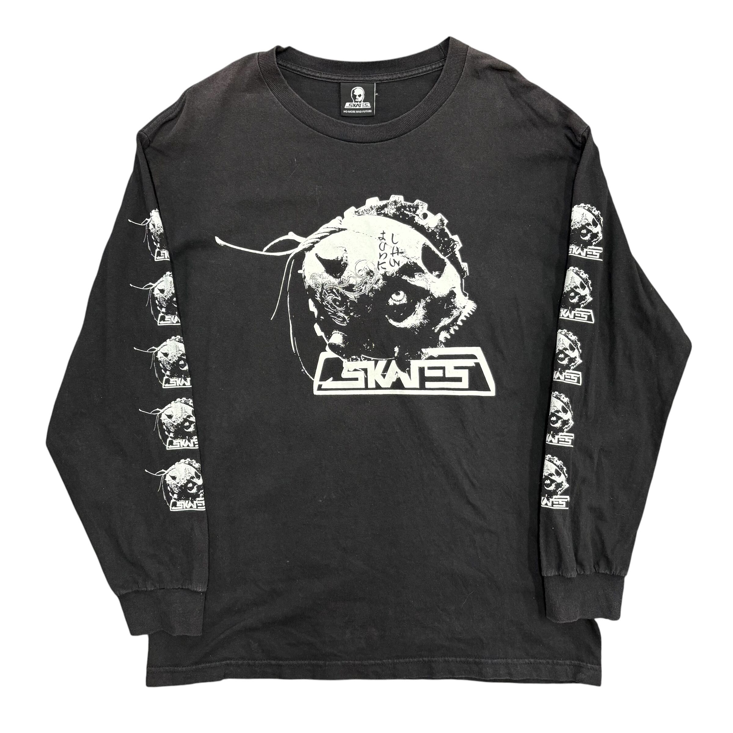 カナダ発の老舗スケートブランド“SKULL SKATES”に、JUNKアーティストJUNKLAW氏の世界観をぶつけたコラボロンT。定番のスカルロゴをベースにしながら、フロントには機械化されたような不穏なスカルグラフィックを配置。無機質さ、毒っ気、ストリート感が混ざった、かなり強い1枚です。