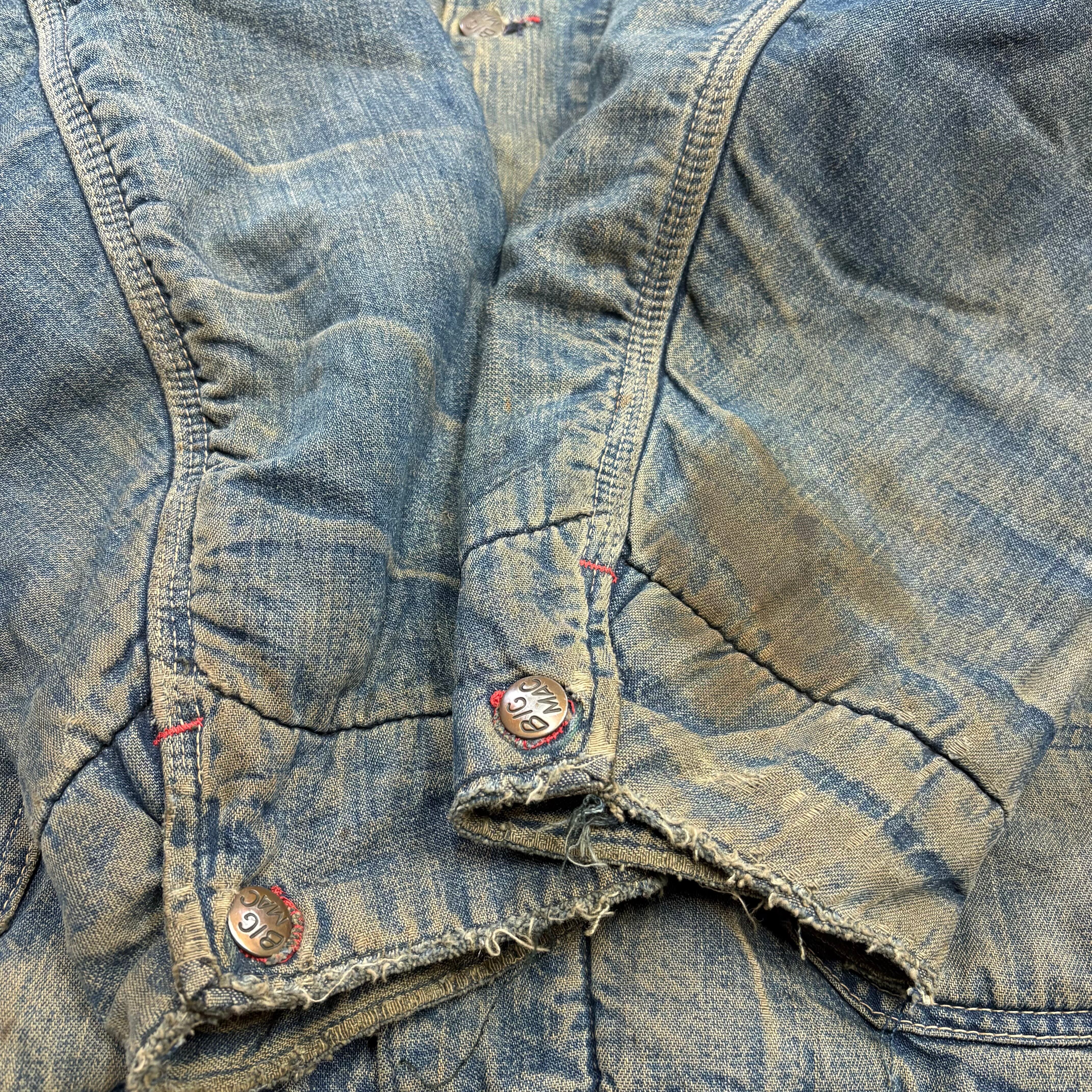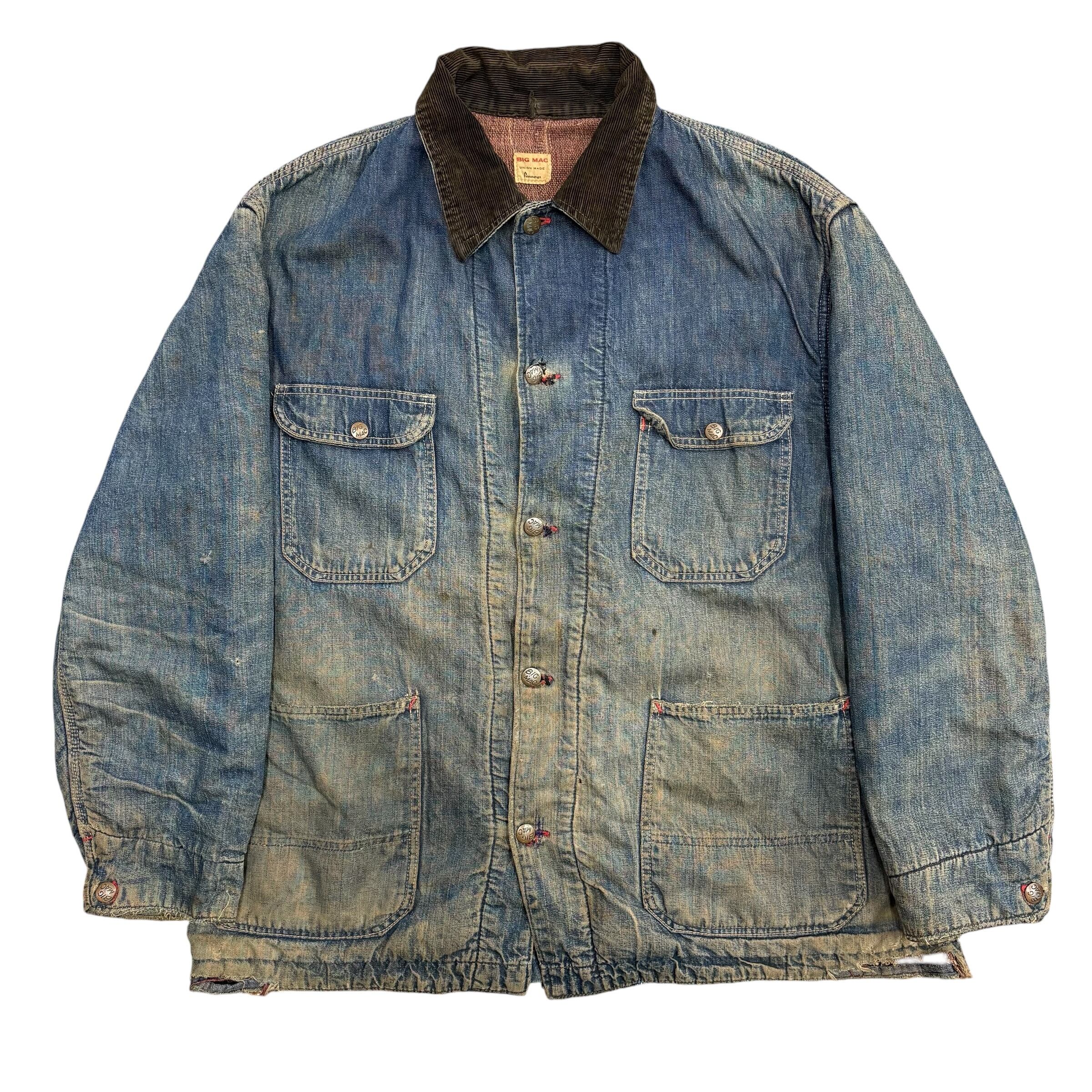 色落ちしたデニムに、黒に近いダークブラウンのコーデュロイ襟。60年代頃のBIG MAC